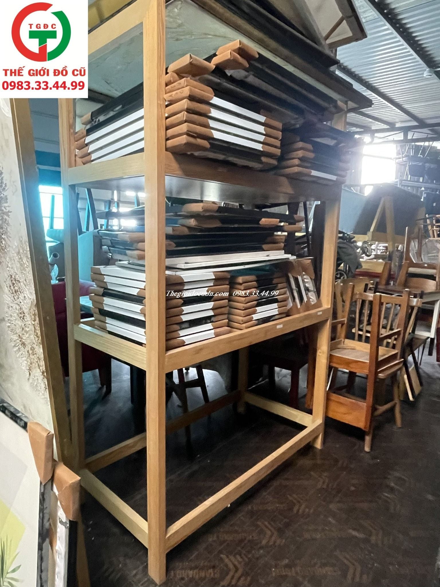 Thanh lý Kệ gỗ cao su đặt để đồ dùng gia đình, quán xá, cửa hàng.