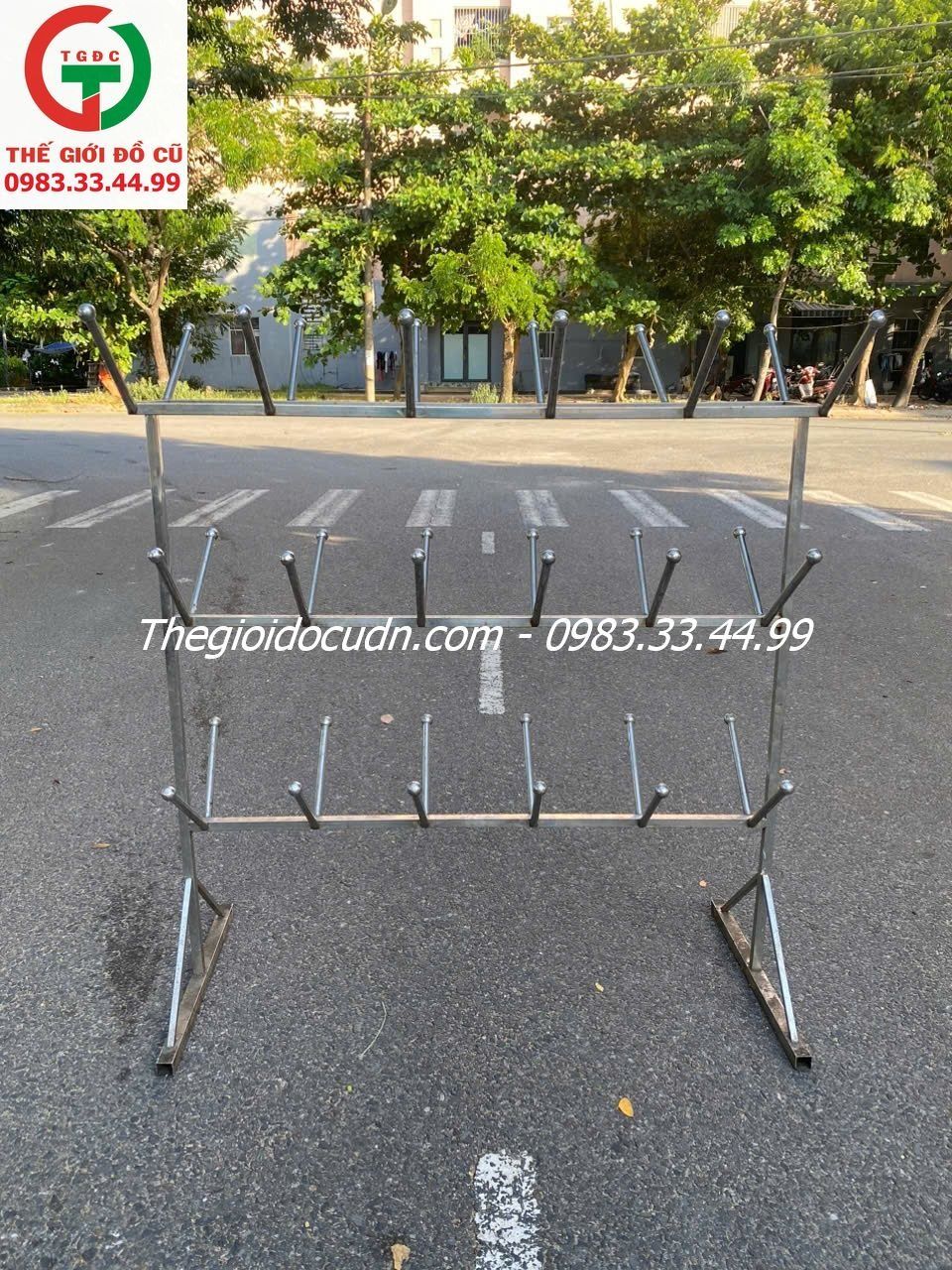 Thanh lý Kệ móc treo inox nhiều đinh còn mới chắc, sử dụng móc đồ dùng bếp quán xá..