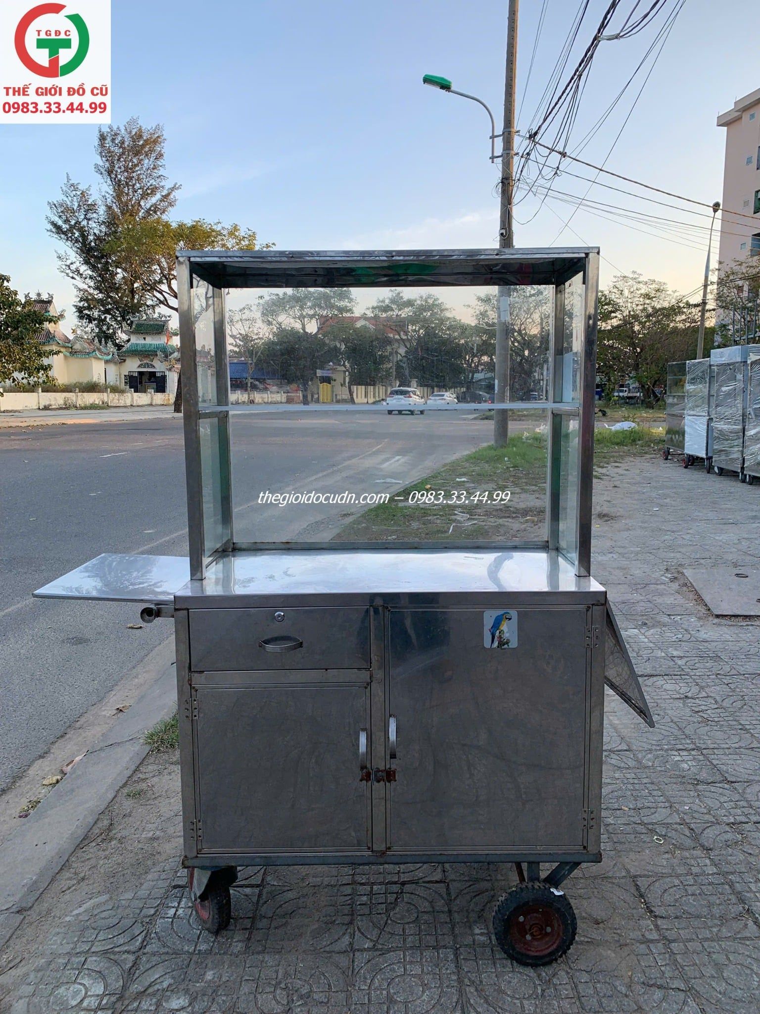-Thanh lí tủ bán hàng inox 1 tầng có bàn chờ bên cạnh chắc cứng.
