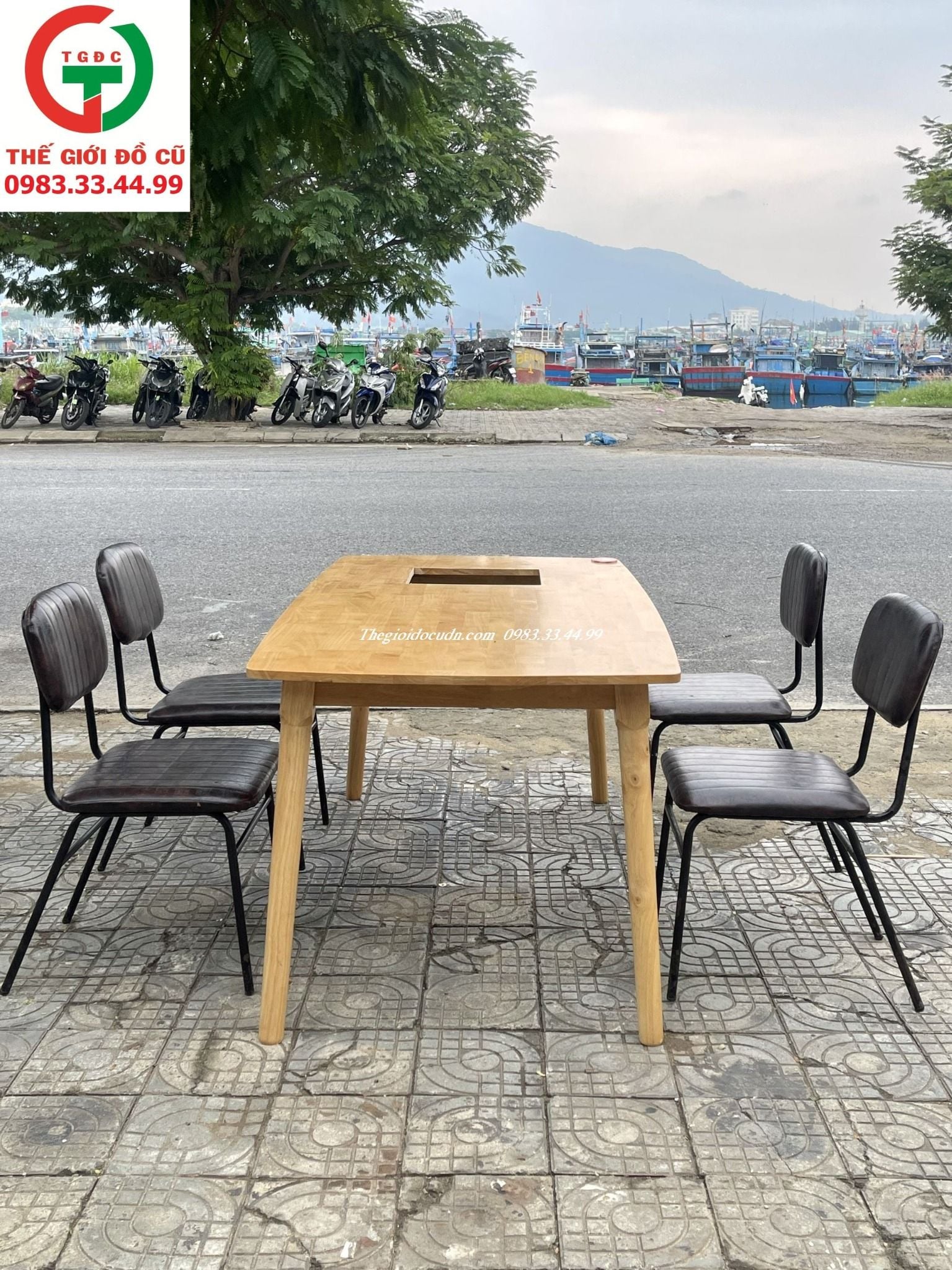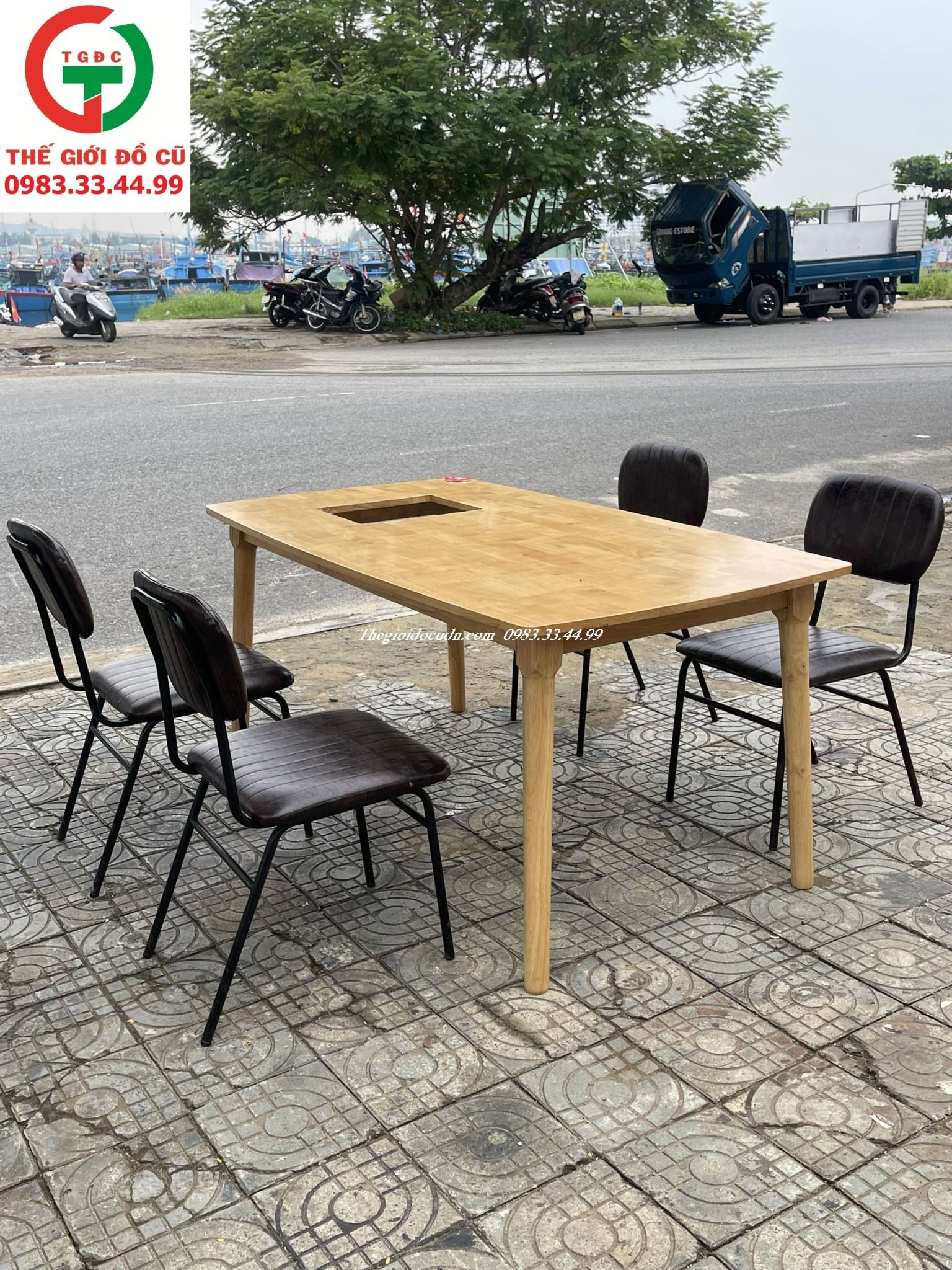 Thanh lý Số lượng về nhiều Bàn ăn mango với thiết kế có ô đặt bếp lấu nướng, kết hợp ghế đệm da ngồi êm sang cho quán ăn, quán nhậu, nhà hàng.
