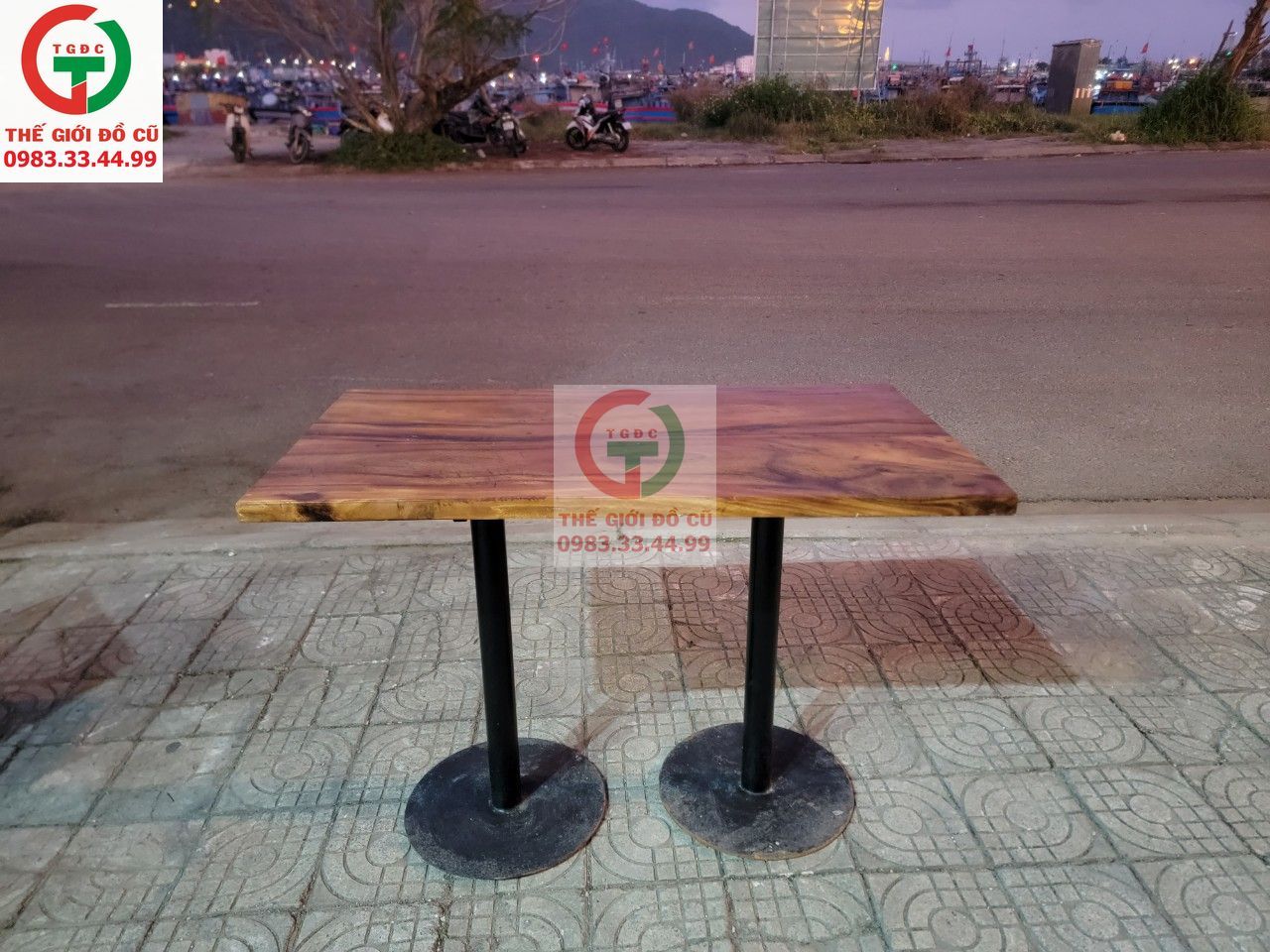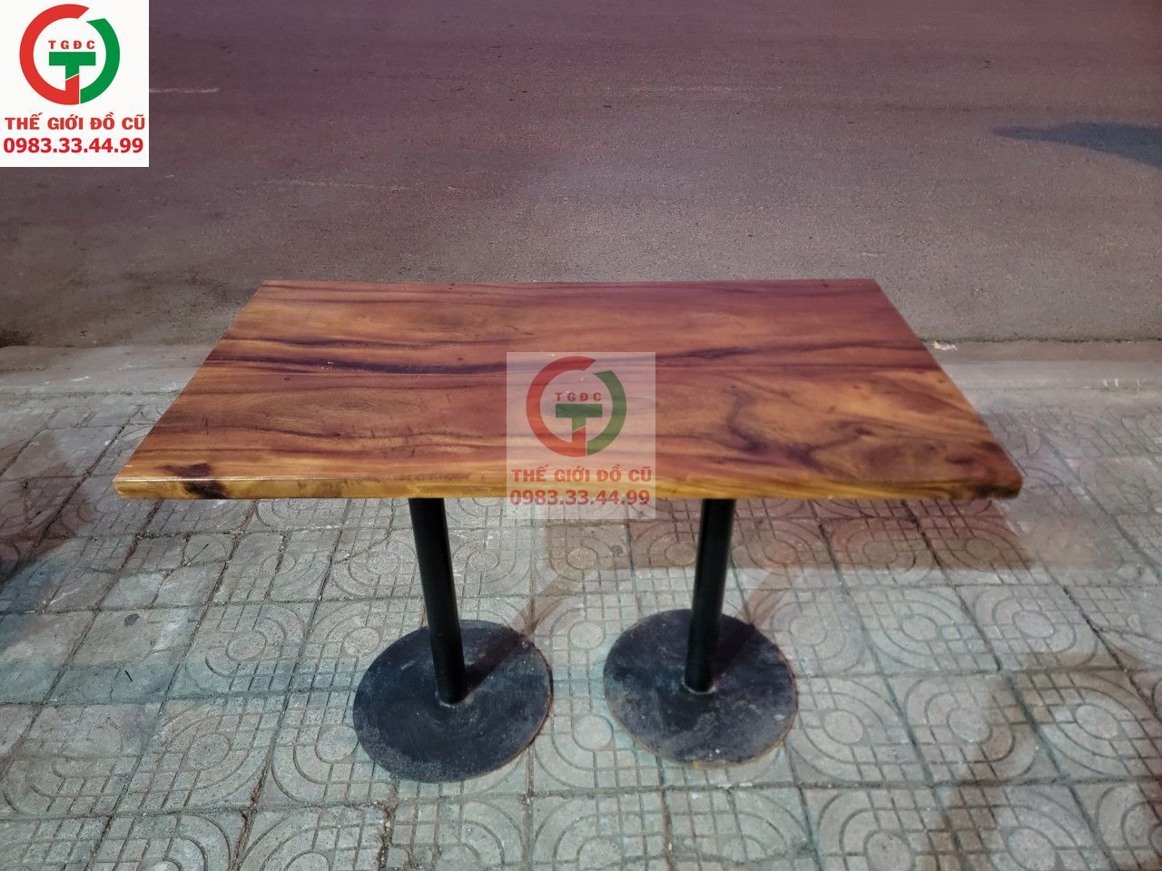 Thanh lý Bàn bar cafe chân sắt mặt gỗ me tây tự nhiên nguyên vân lõi.