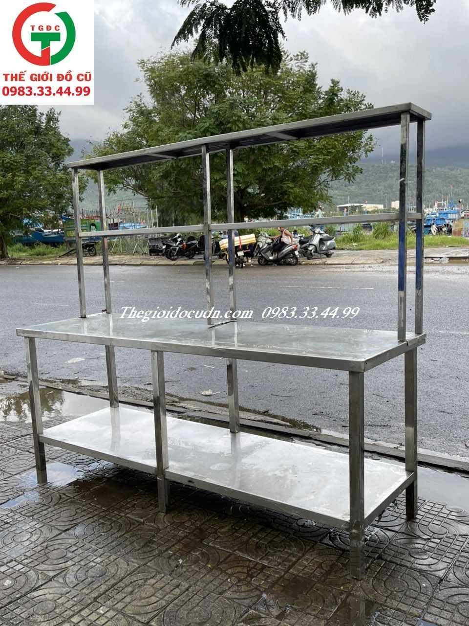 - Bàn inox chắc chắn, tầng dưới và kệ trên đặt để đồ dùng bếp tiện gọn.