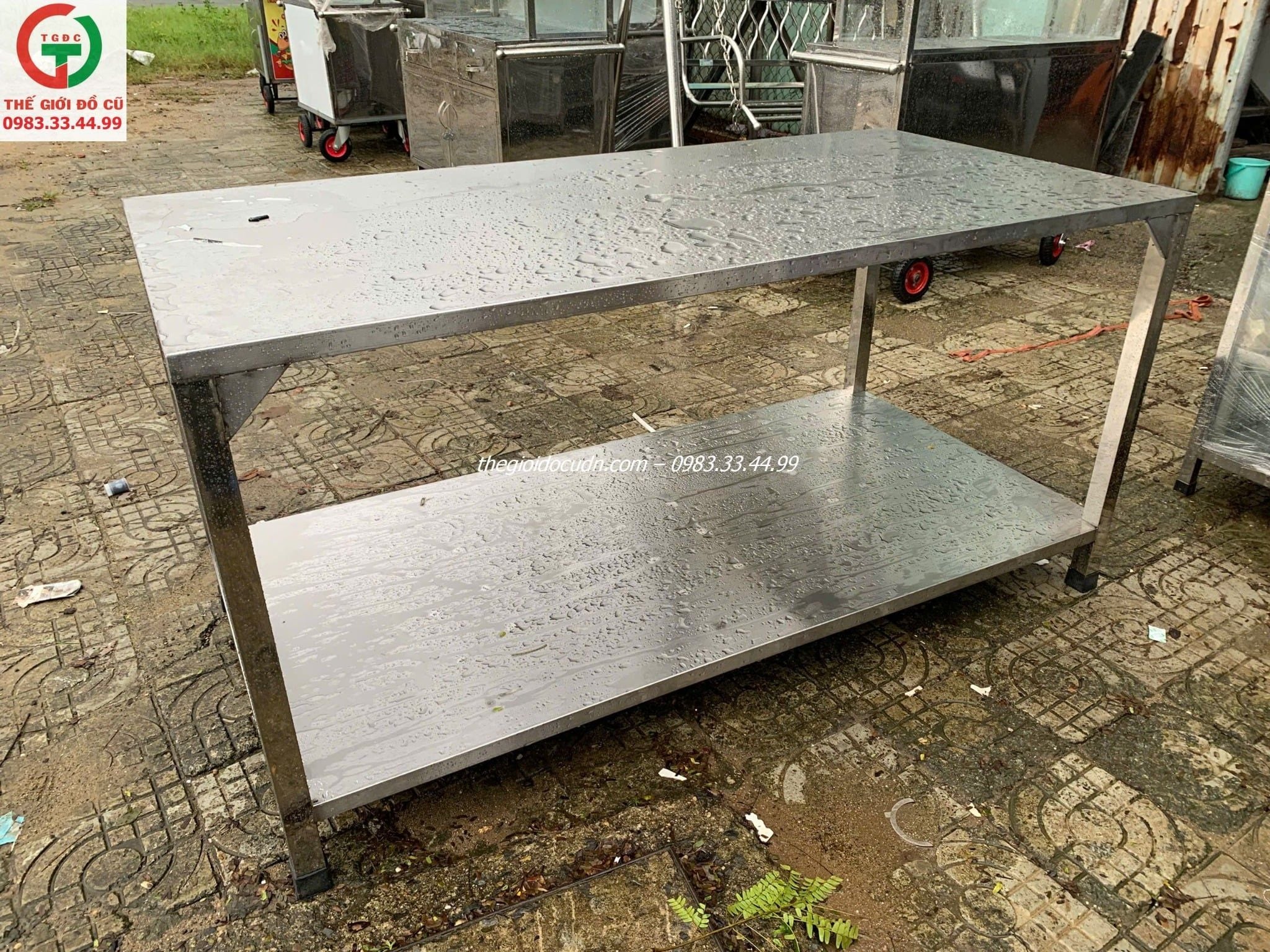 +Bàn chế biến inox 2 tầng chắc cứng , thanh lý cho anh chị chọn lựa sử dụng trong bếp ăn quán xá, nhà hàng.