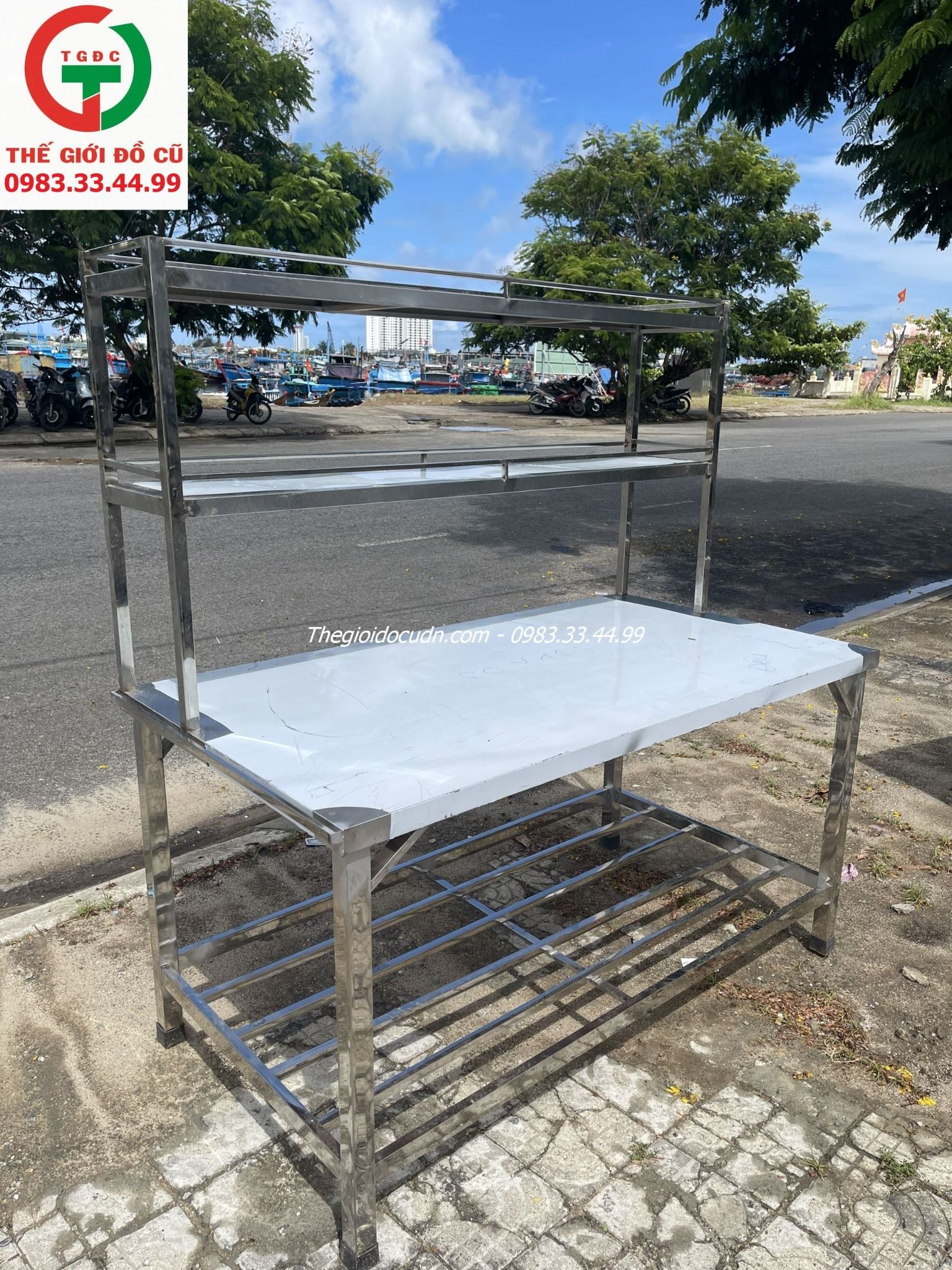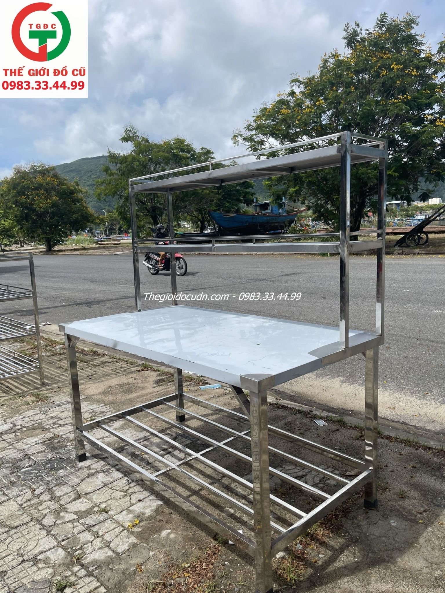 Bàn chế biến liền kệ - Bàn bếp inox liền kệ