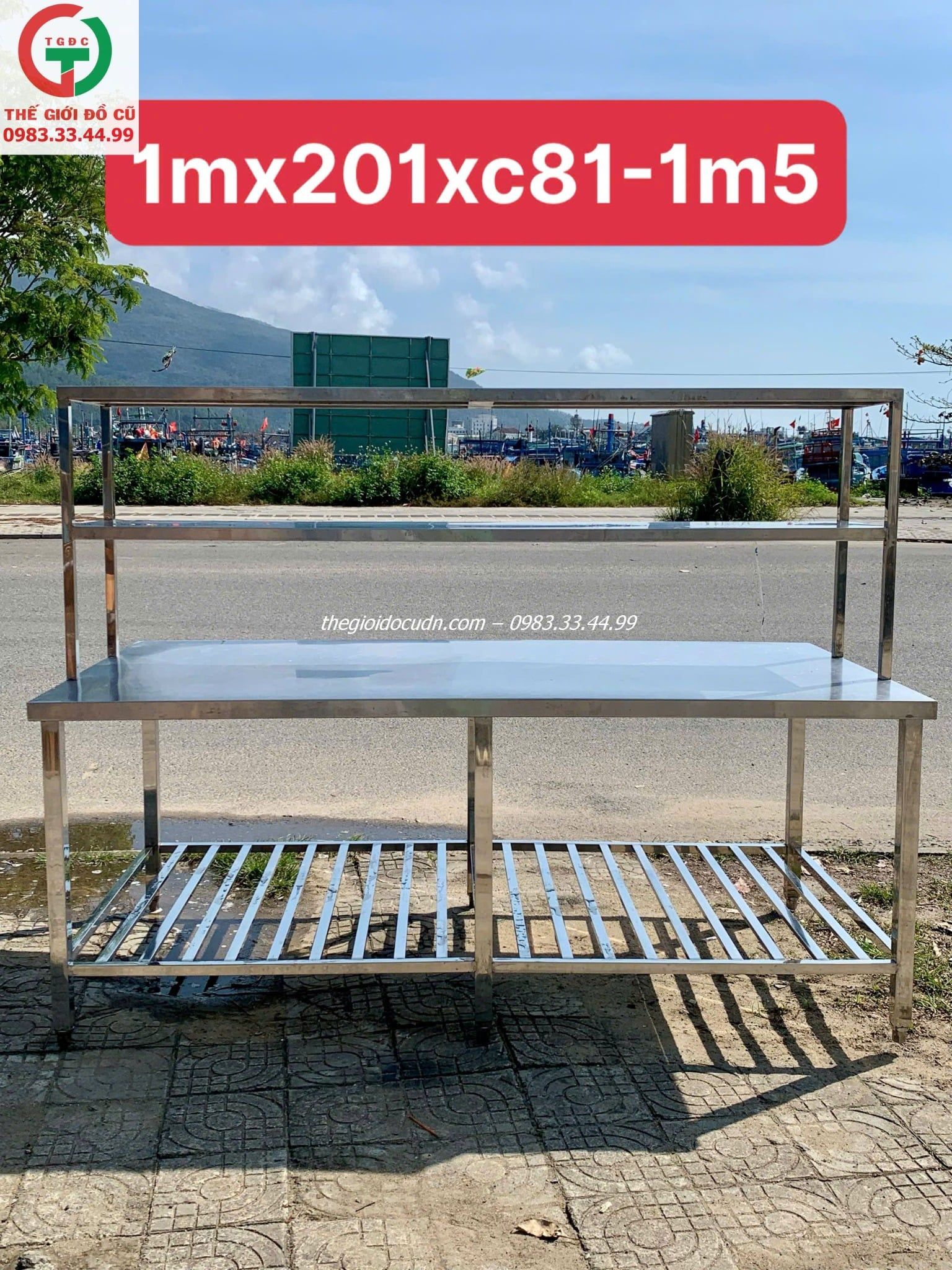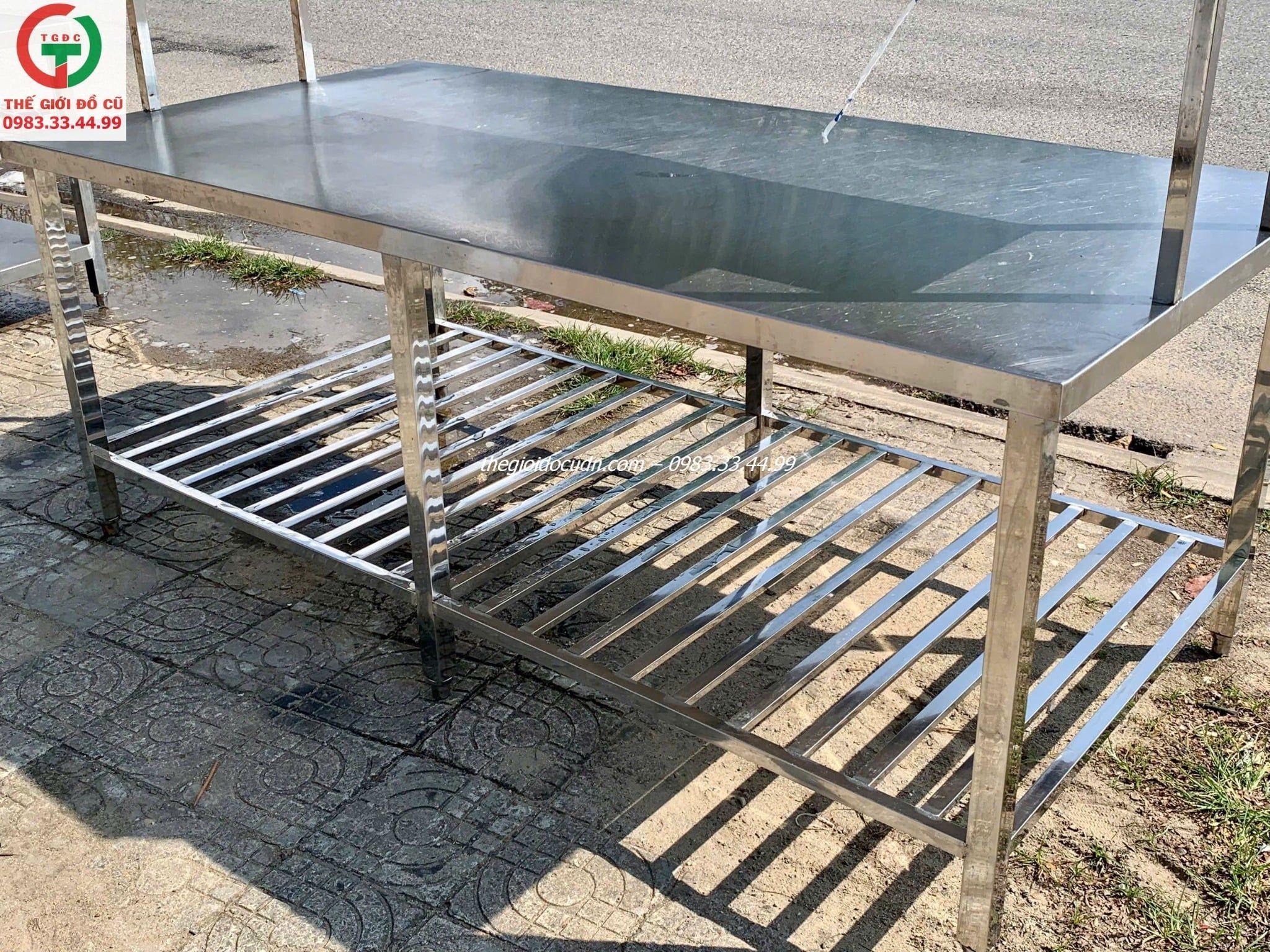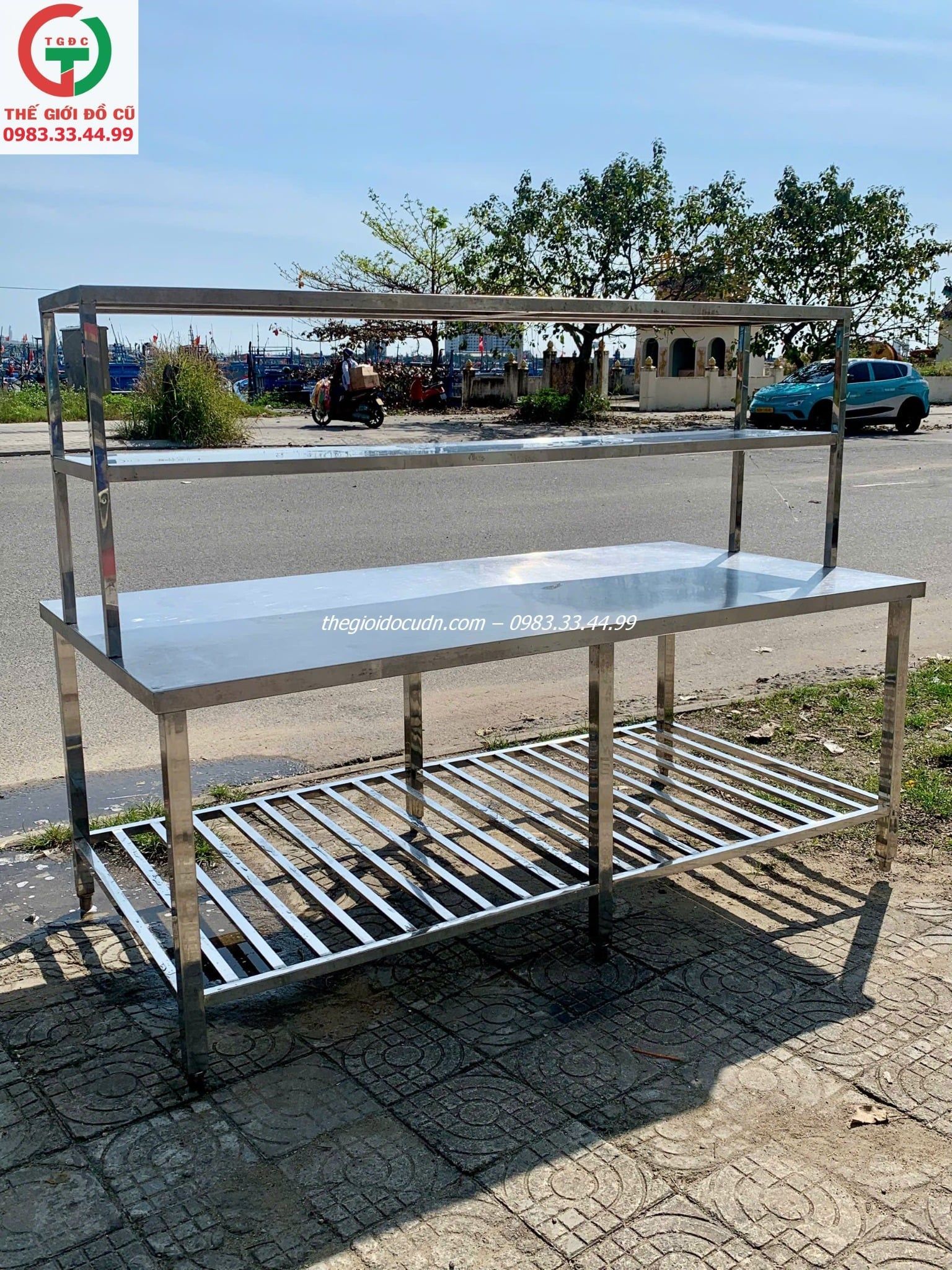 +Thanh lý Bàn chế biến inox 2 tầng có kệ trên, thích hợp cho bếp nhà hàng, quán ăn, bếp công nghiệp hoặc dùng gia đình.