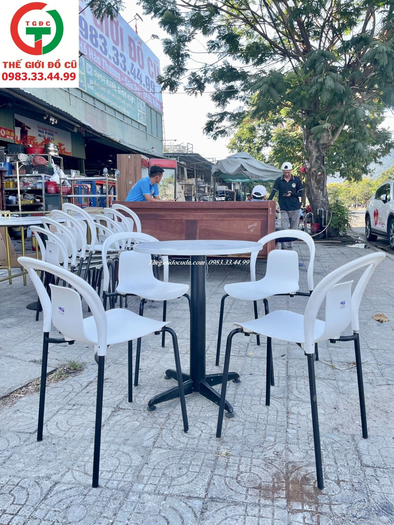 Thanh lý mấy bộ bàn ghế cafe màu trắng đẹp sang còn mới cho quán nào cần setup.