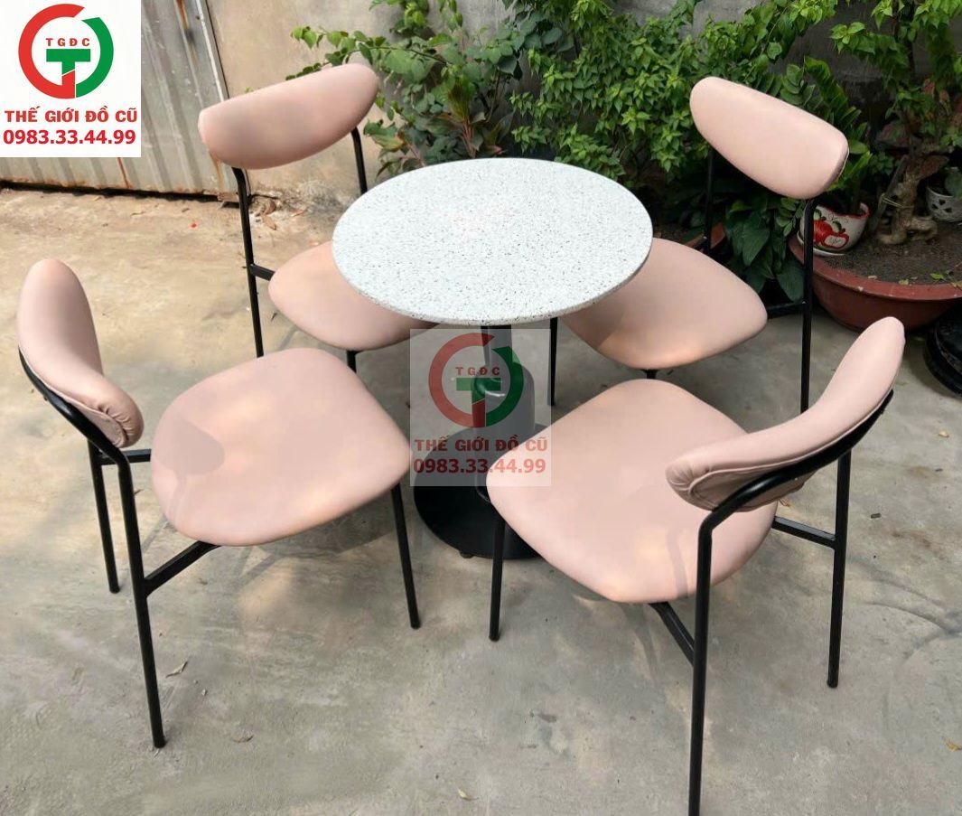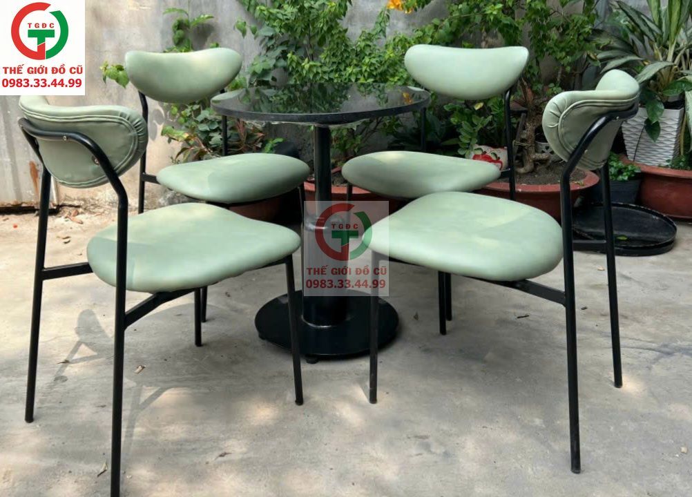 BÀN GHẾ CAFE ĐỆM DA CHÂN SẮT NHẬP KHẨU