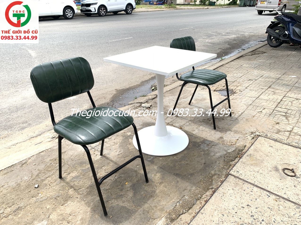 - Bàn chân sắt tiĩnh điện mặt gỗ vuông, ghế đệm da ngồi êm, thích hợp mọi không gian quán..
