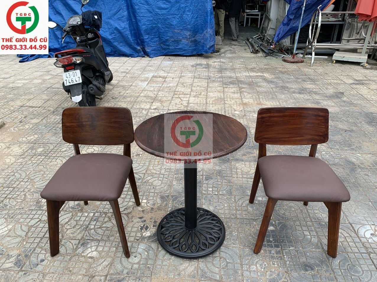 Thanh lý một số Bàn Ghế Cafe gỗ tần bì màu đẹp bền, chân bàn trụ sắt tĩnh điện nguyên khối, ghế đệm lót êm sang.