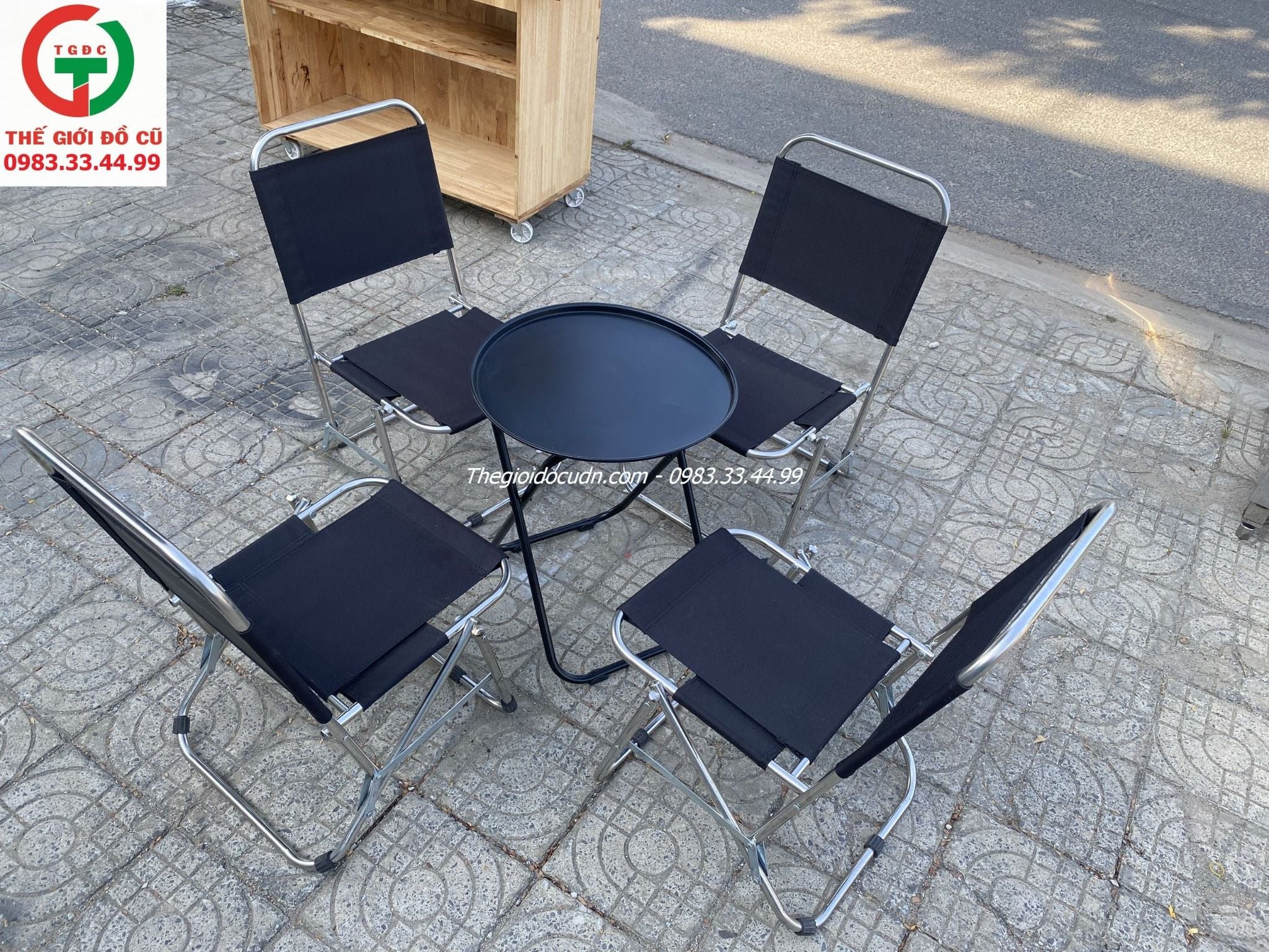 Thanh lý mấy bộ bàn ghế xếp sắt cho các quán cafe cóc, trà chanh, trà sữa tận dụng setup.