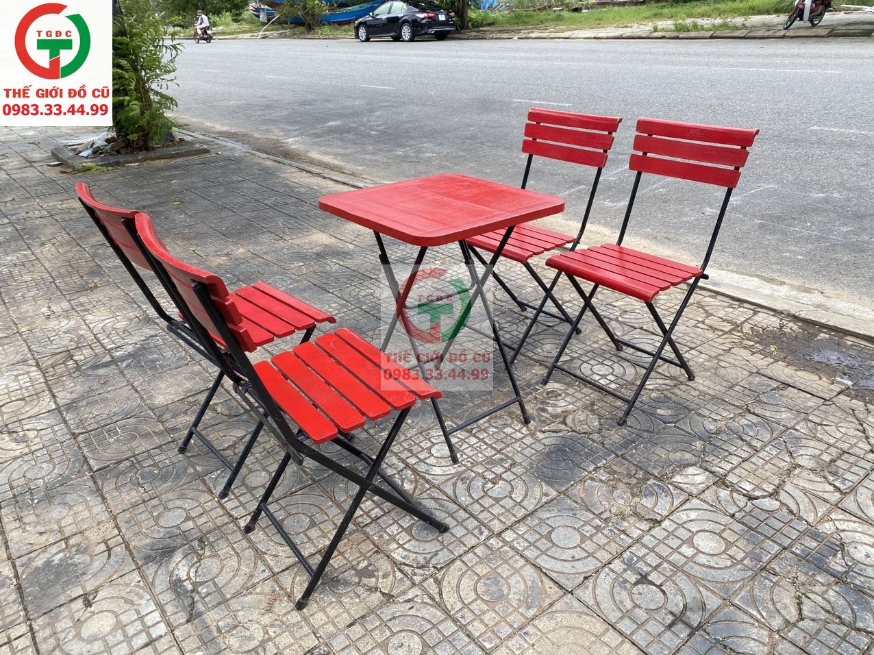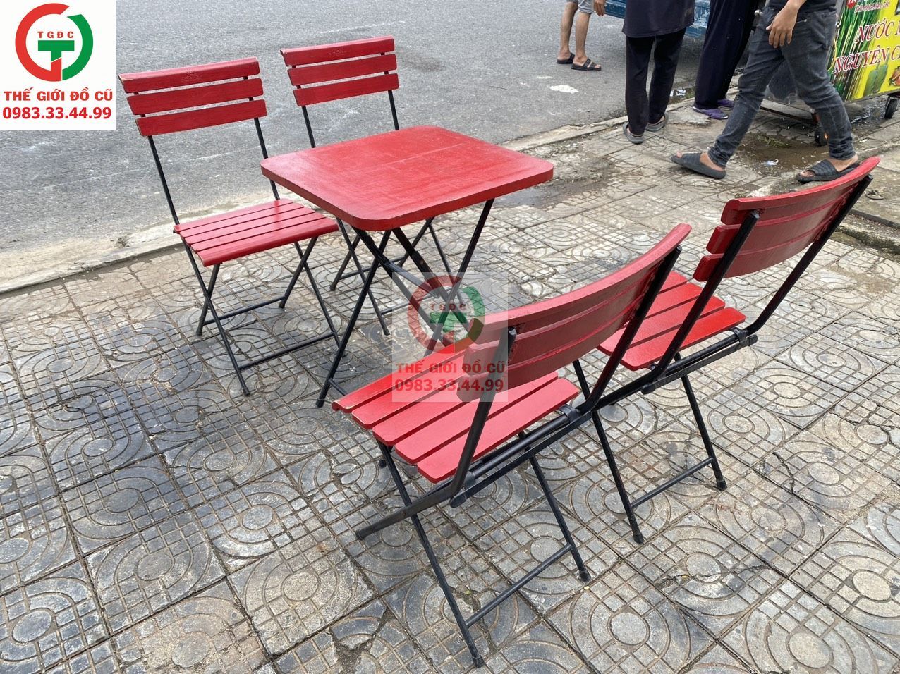 -Bàn ghế còn mới, xếp gọn và di chuyển nhẹ tênh, bền bỉ với các quán xá setup trong nhà ngoài vườn..