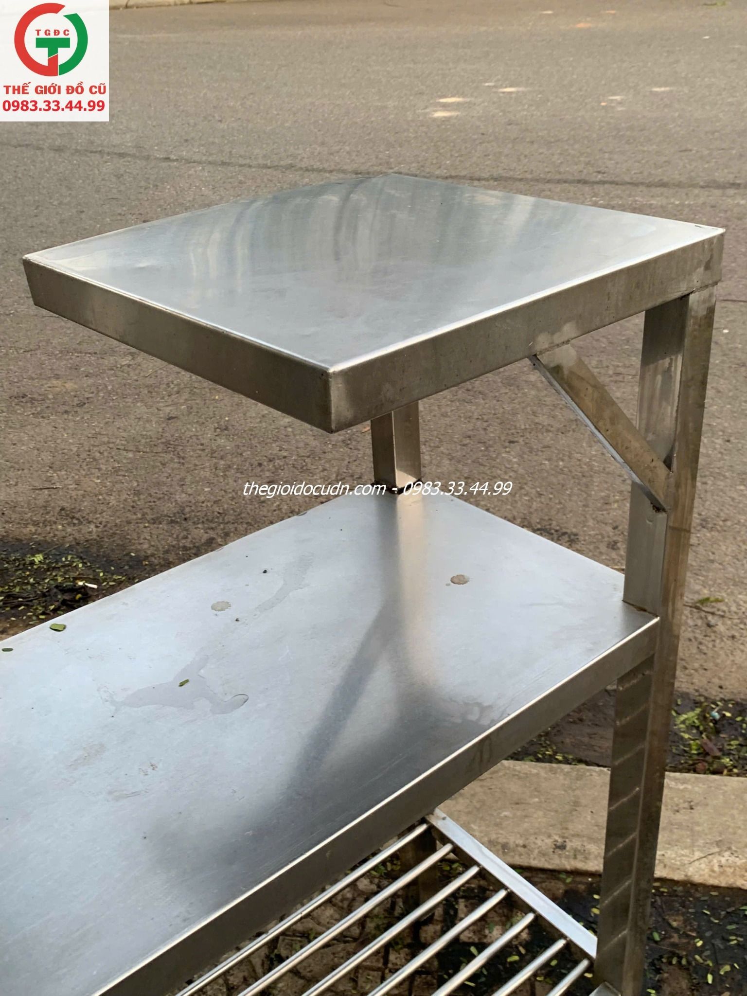 - Bàn chất liệu inox 304 dày cứng, sáng bóng , tích hợp 3 tầng vừa để gia vị vừa lò vi sóng rã đông tiện lợi cho đầu bếp.