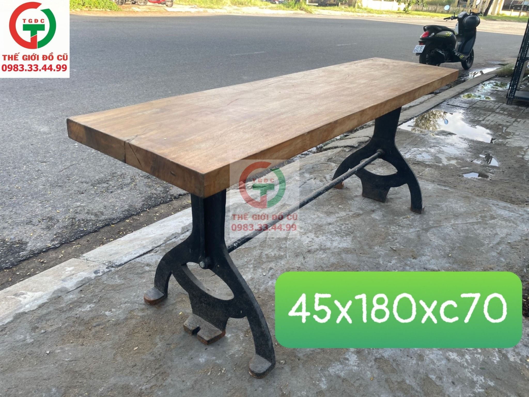 Thanh lý Bàn gỗ me tây nguyên tấm chân gang đúc đẹp cho quán cafe, nhà hàng..