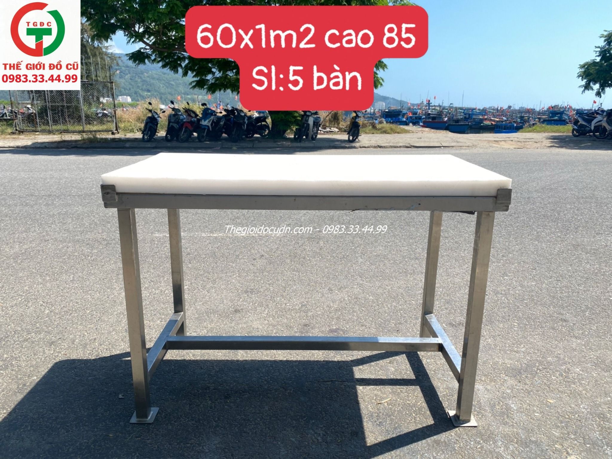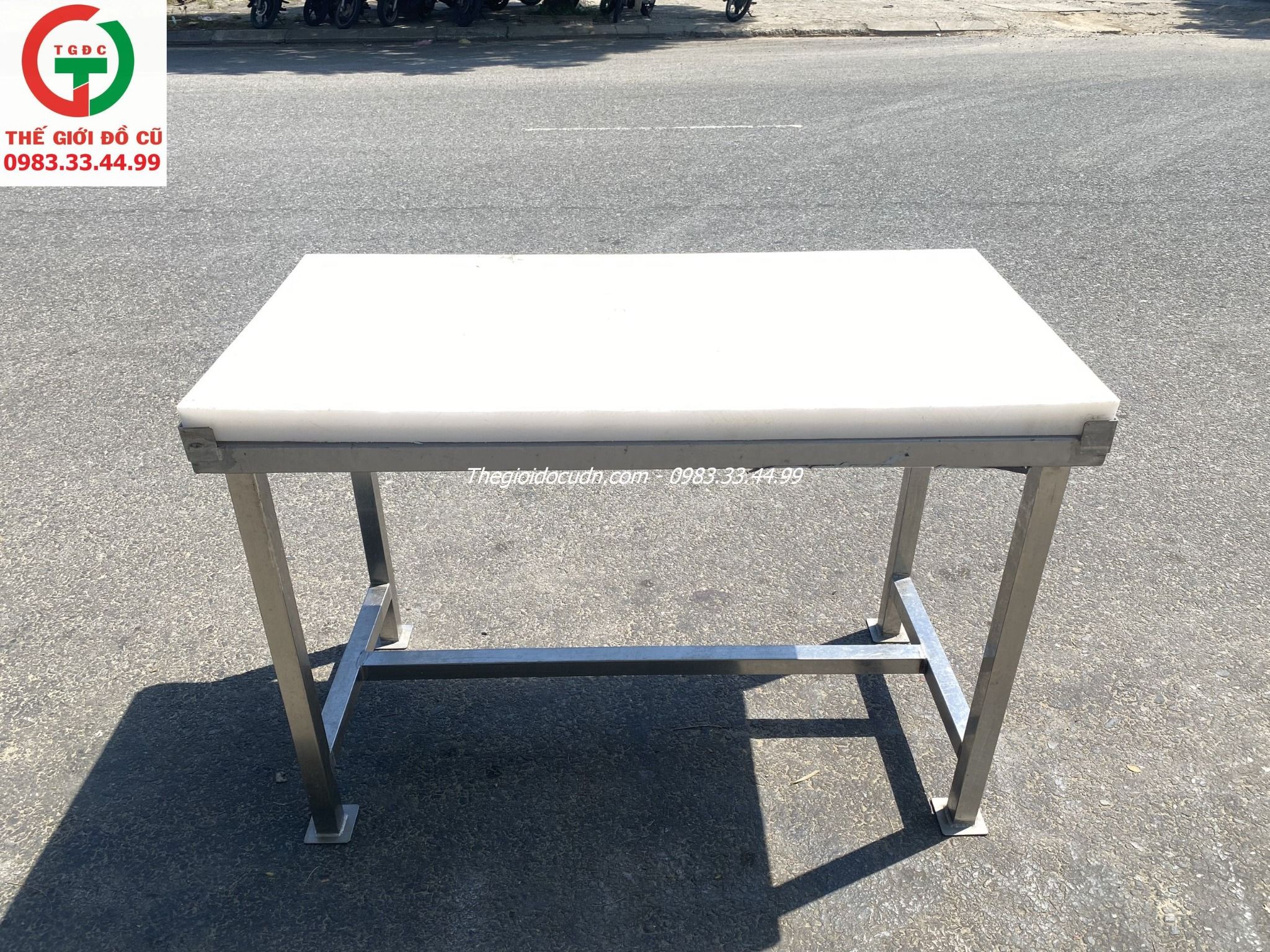 Thanh lý Bàn inox thớt nhựa dày 5cm dùng sơ chế, chế biến món quán ăn, nhà hàng.