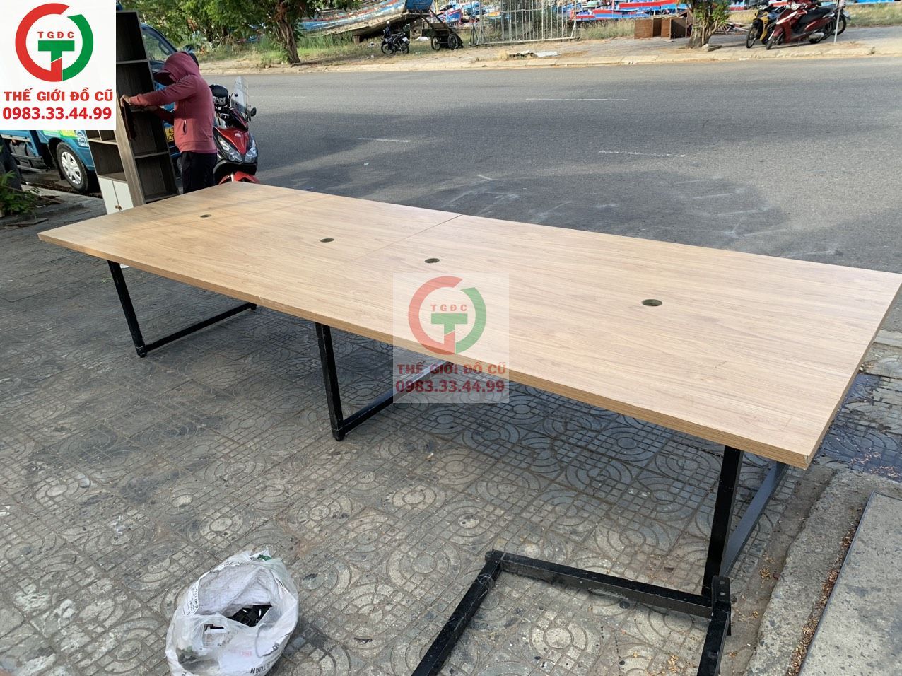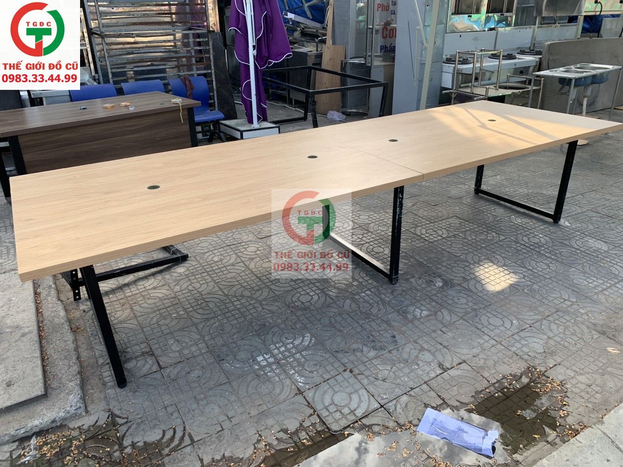 Thanh lý Bàn Làm việc team, bàn họp văn phòng gỗ MDF khung chân sắt tĩnh điện còn mới chắc.