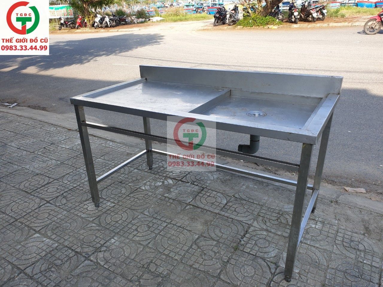 Thanh lý Bàn Sơ Chế - Bàn Chế Biến Inox có họng thoát nước cho bếp ăn quán ăn, quán nhậu, nhà hàng tận dụng sơ chế, chế biến món..