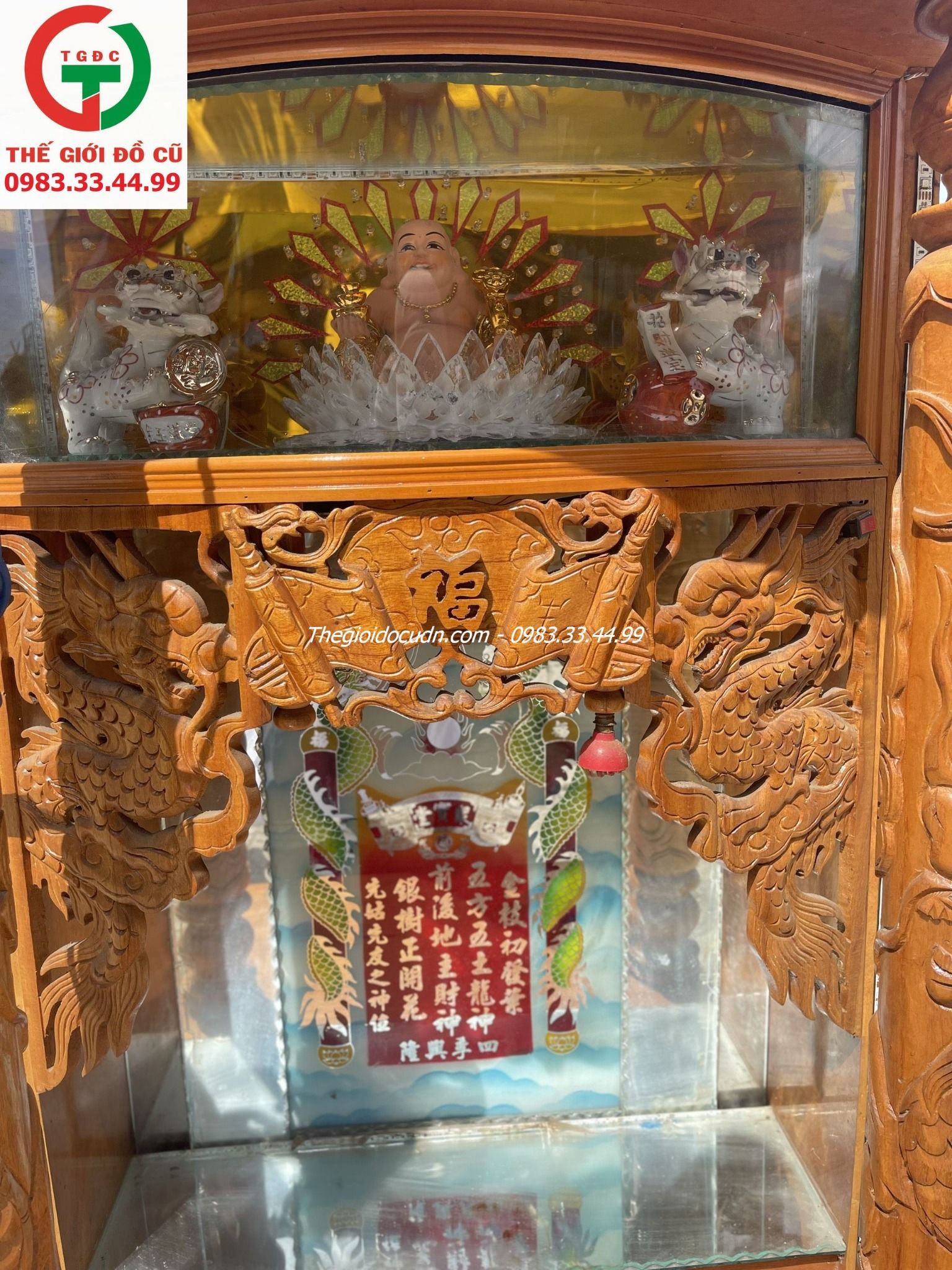 Thanh lý Quầy Bàn thờ thần tài to rộng còn mới, chạm kahức đẹp cho quán xá, khách kinh doanh cần tìm.