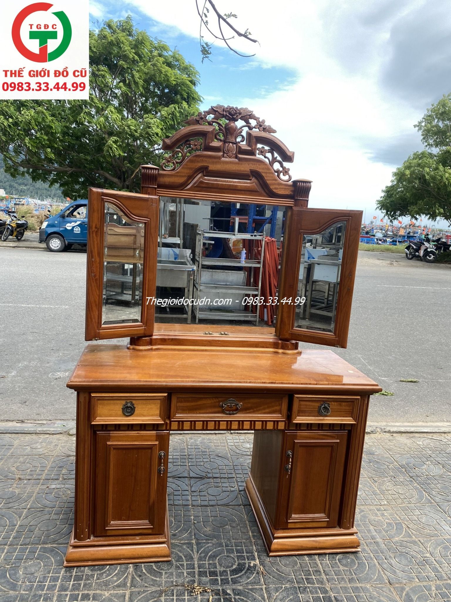 Thanh lý Bàn Trang Điểm gỗ kiểu tân cổ đẹp sang còn mới cứng, gương sáng nét có cửa đóng.