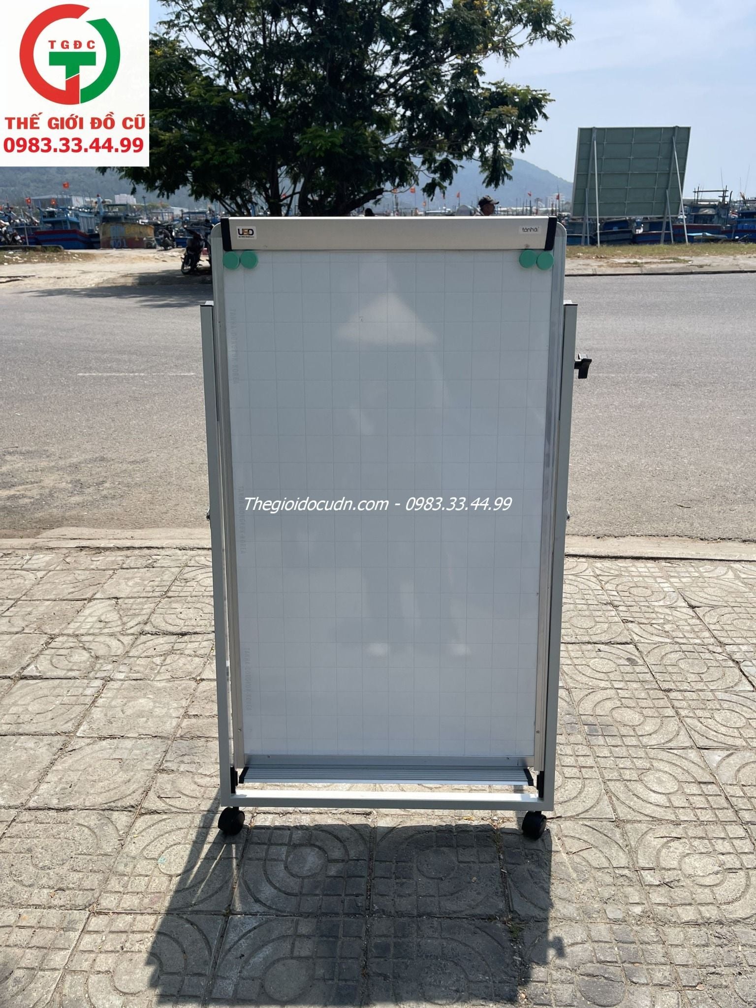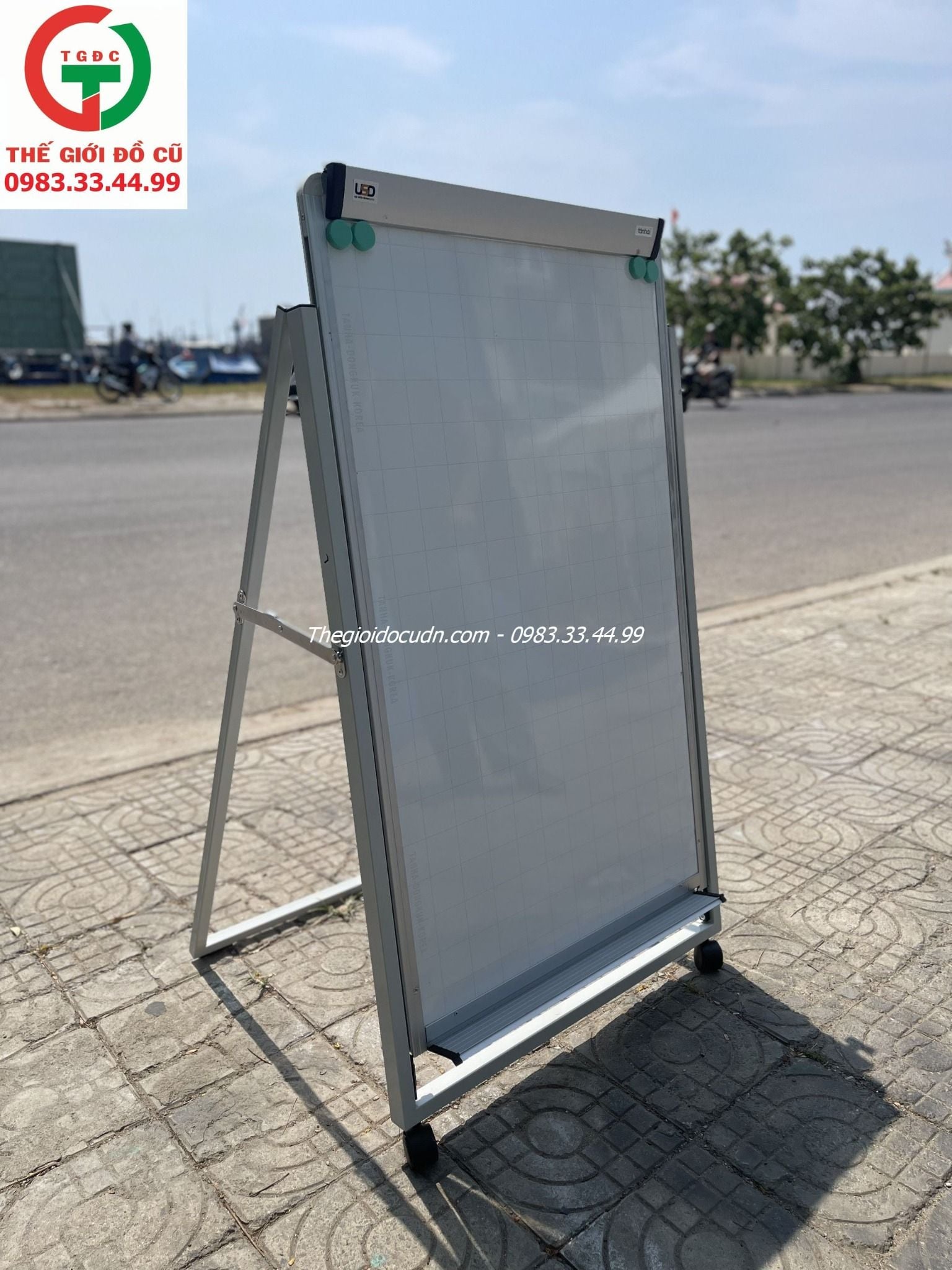 Bảng còn mới, khung chắc chắn, có bánh xe di chuyển tiện nhẹ.