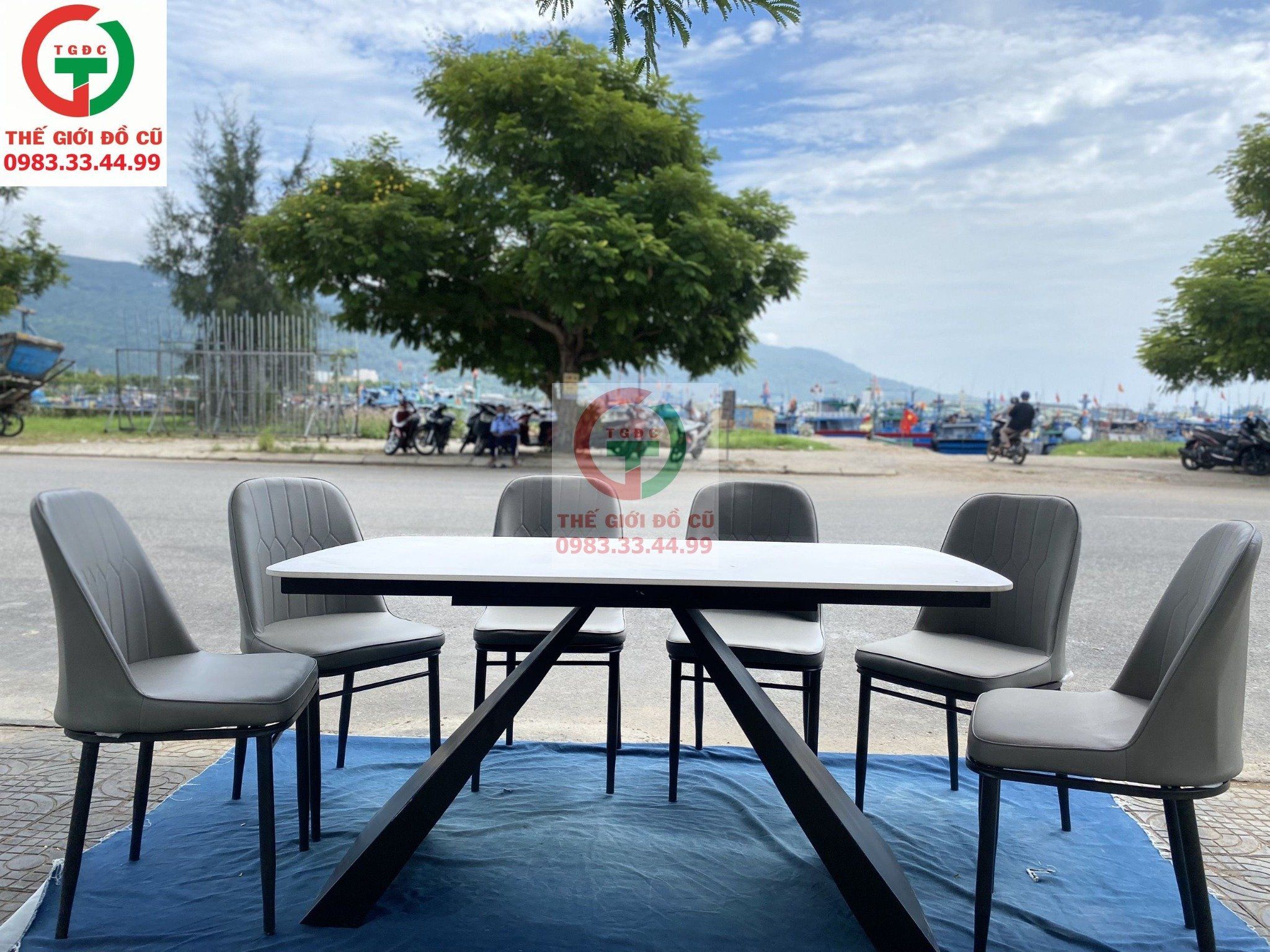 -Với kết hợp bàn mặt đá chân X và ghế đệm da ngồi êm sang thoải mái.