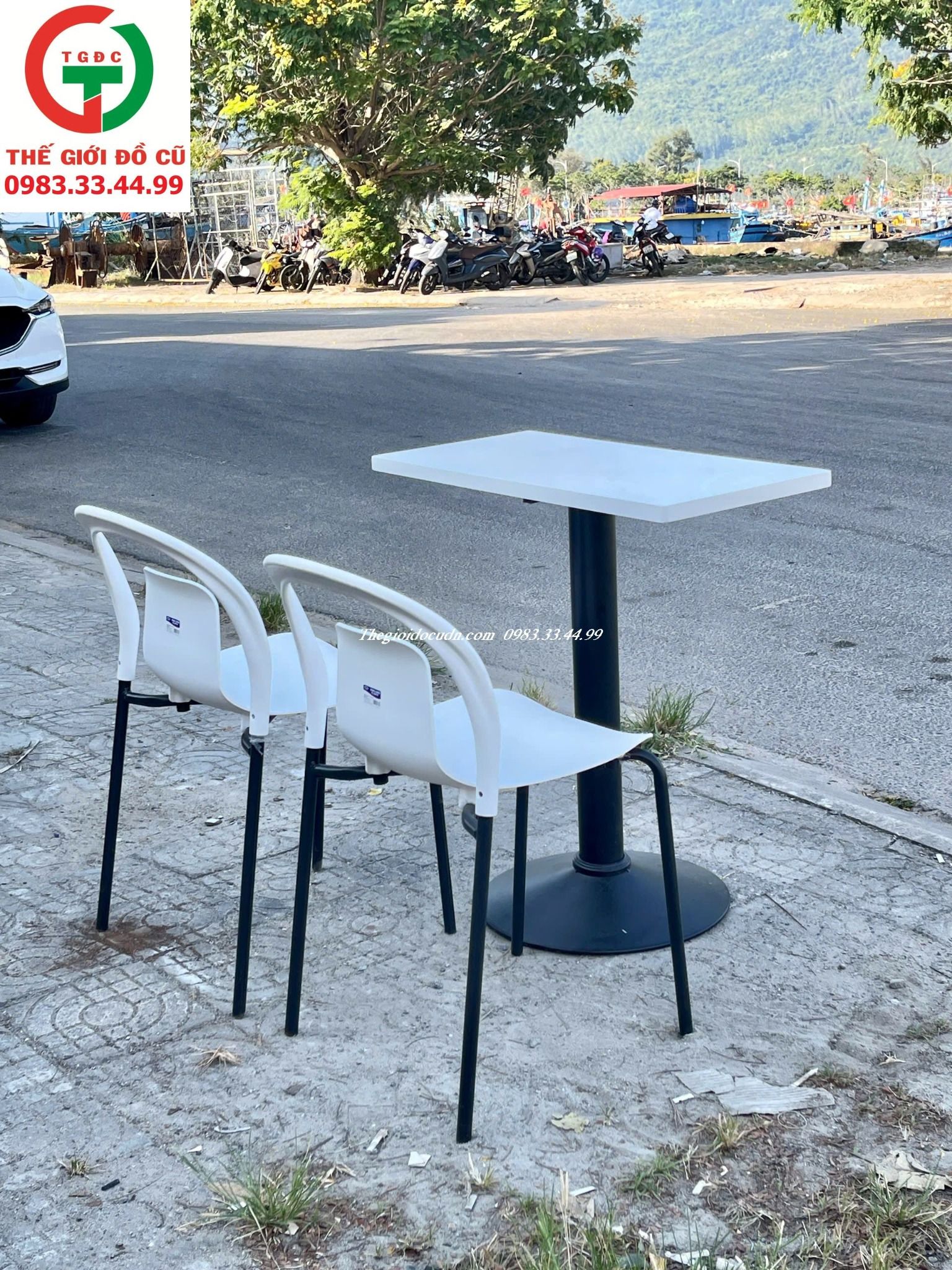 Thanh lý mấy bộ bàn ghế cafe màu trắng đẹp sang còn mới cho quán nào cần setup.