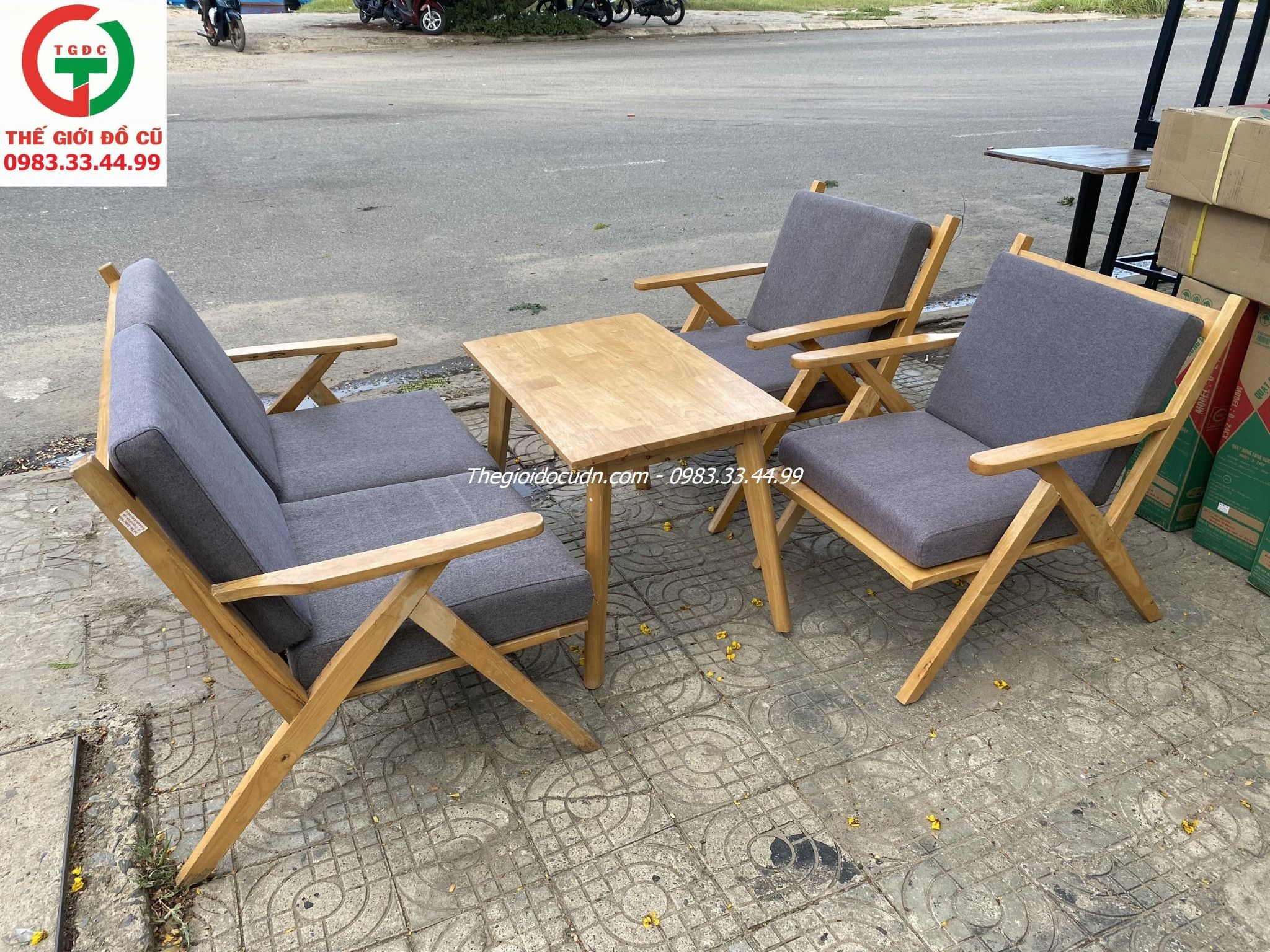 Thanh lý Bộ Bàn Ghế gỗ đệm đẹp sang cho quán xá cafe setup, hàng còn mới đệm màu ghi ngồi êm sang, khung gỗ chắc chắn.