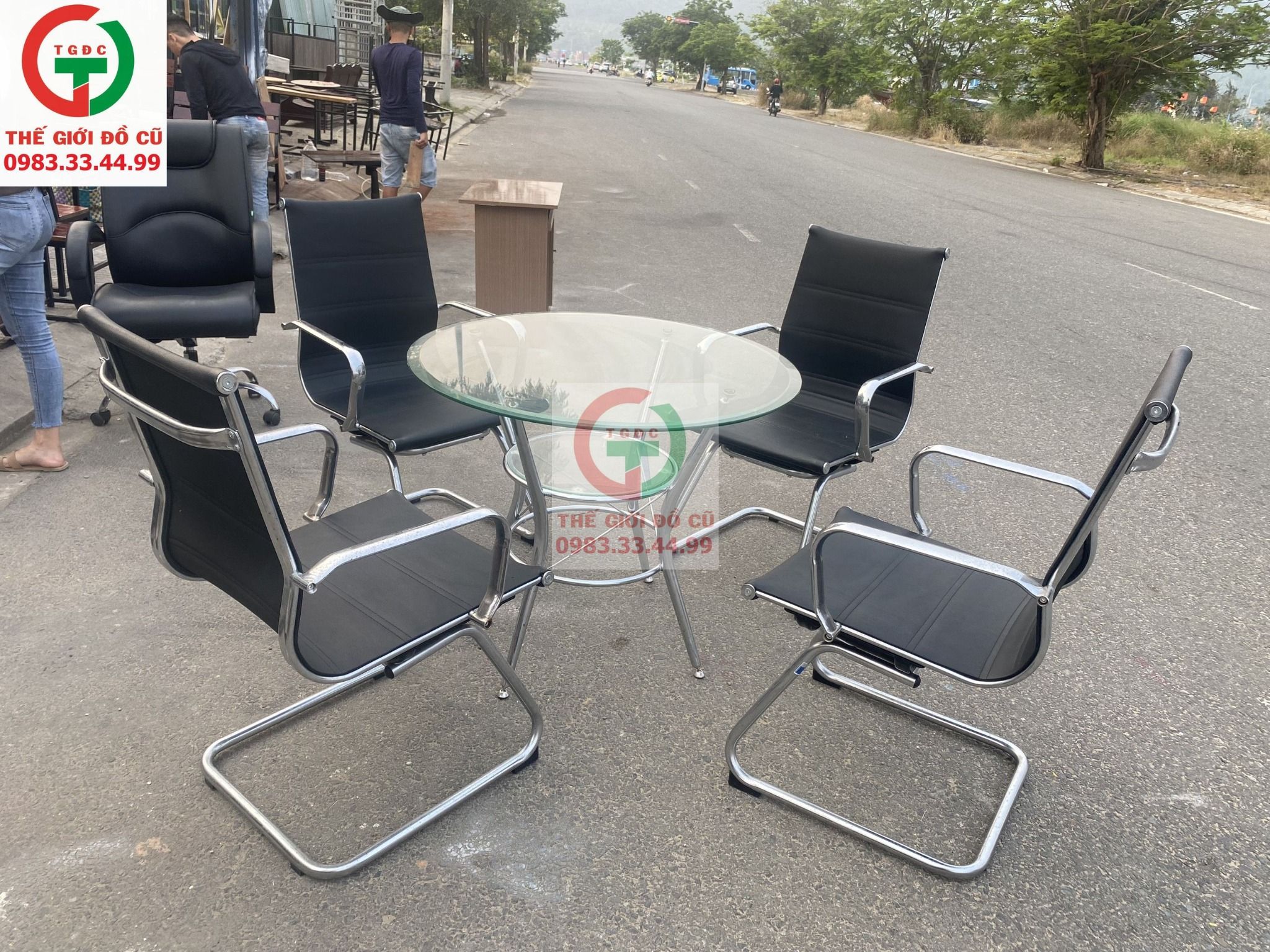- Thanh lý Bộ bàn Ghế tiếp khách văn phòng - bàn inox kính cường lực kết hợp ghế da chân quỳ lưng cao còn mới đẹp sang.