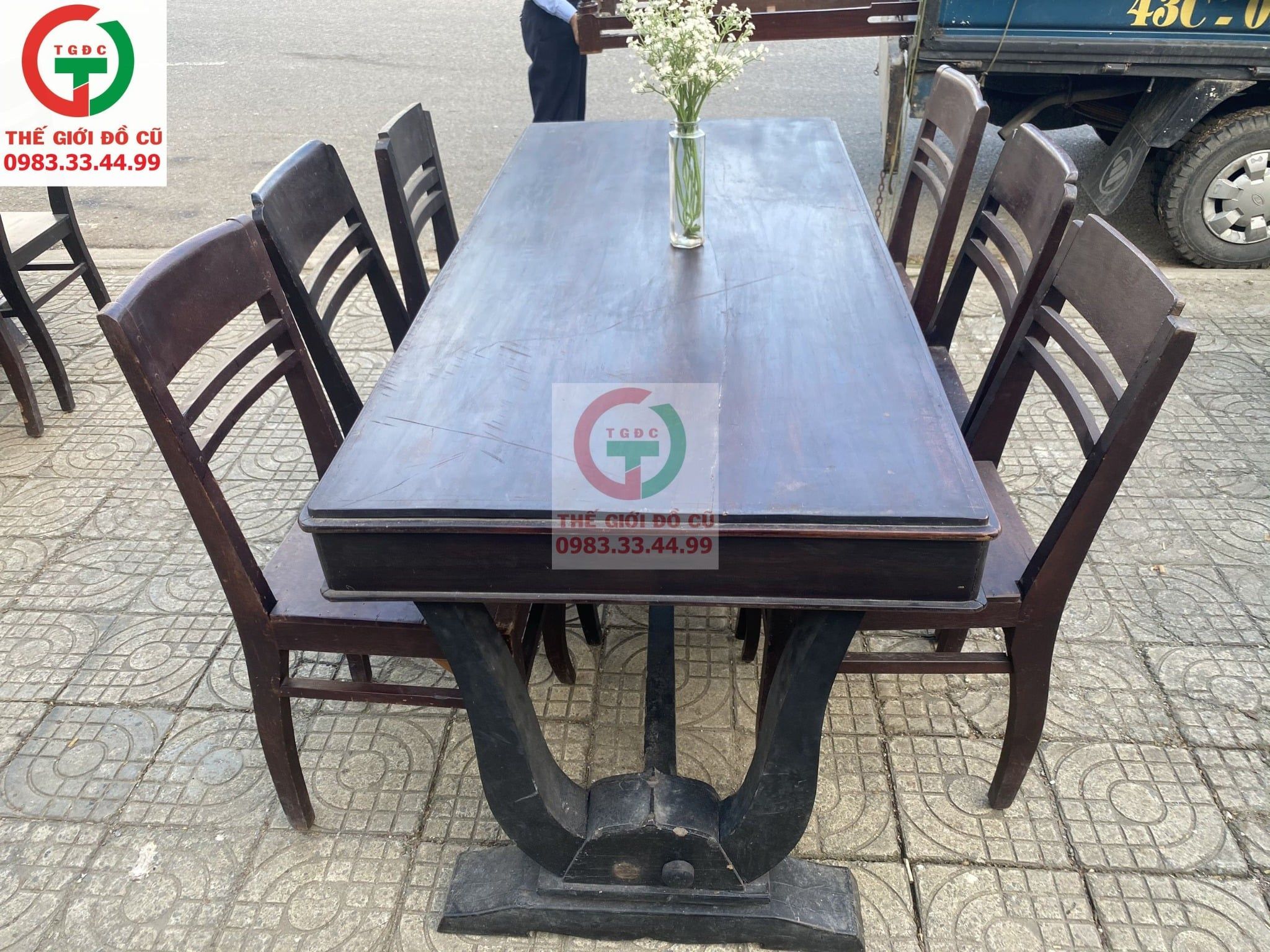 Thanh lý Bộ Bàn Trà Chân V 6 ghế gỗ xưa còn chắc cứng, chất đẹp bền giá trị cho các Bác decor setup quán cafe, nhà hàng xưa..