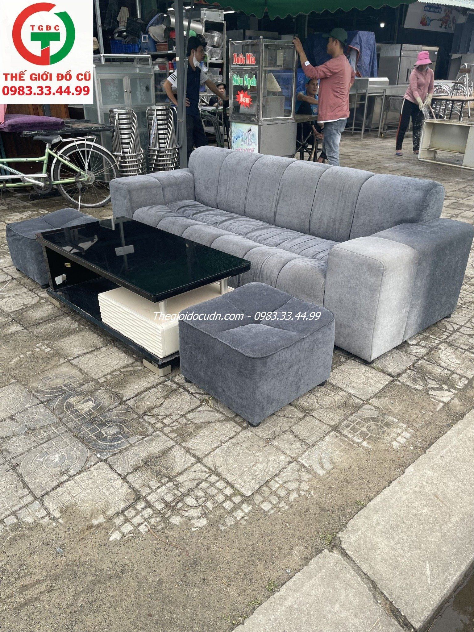 Thanh lý Bộ Sofa đệm nhung bàn kính cường lực còn ngon, ngồi tiếp khách sang êm cho gia đình, văn phòng dịch vụ..