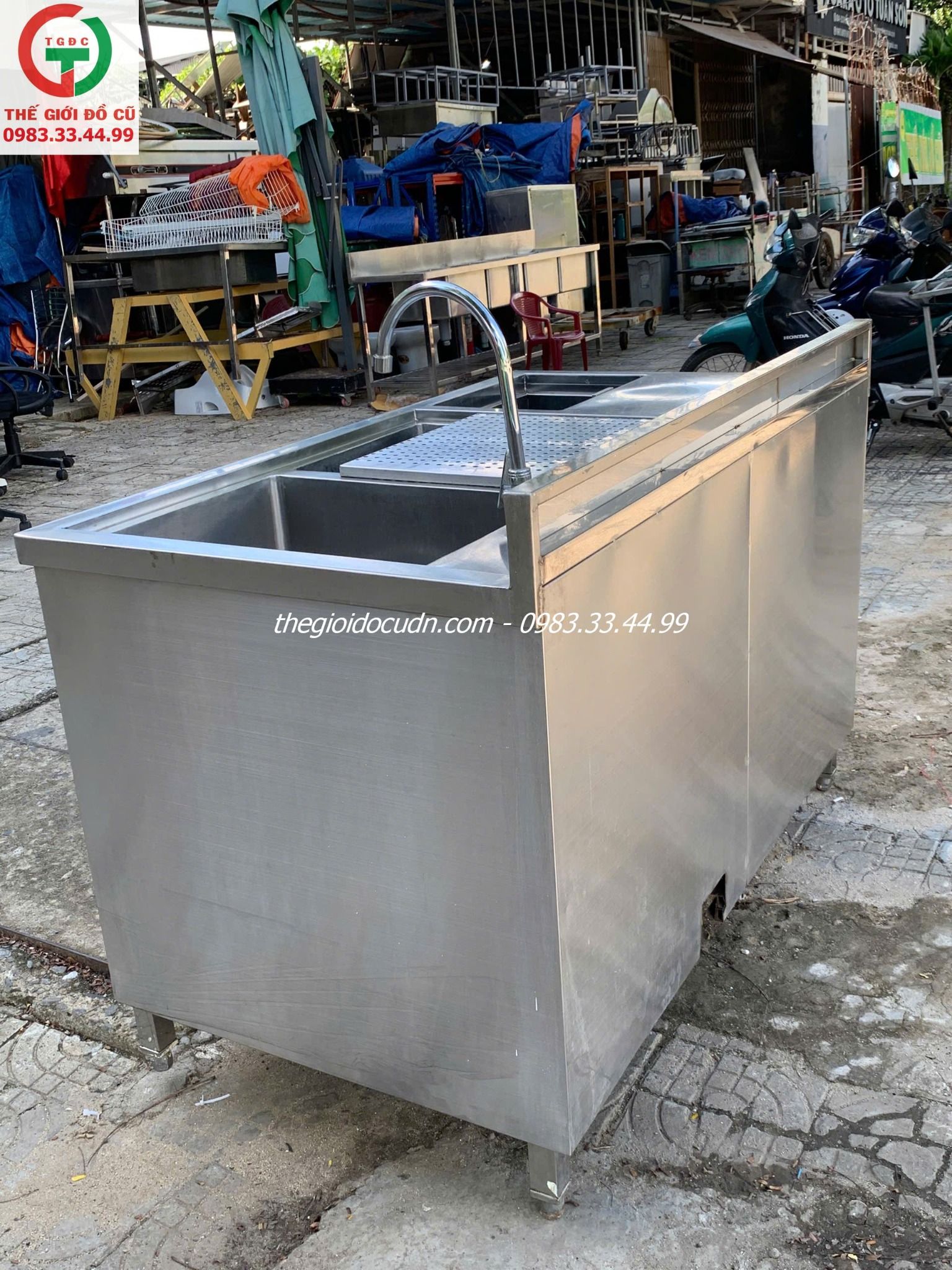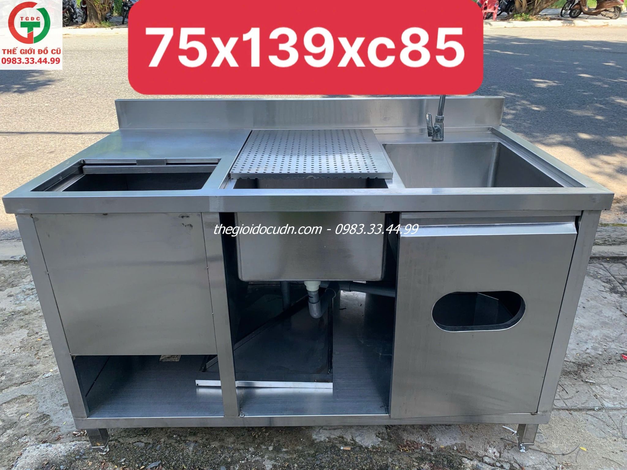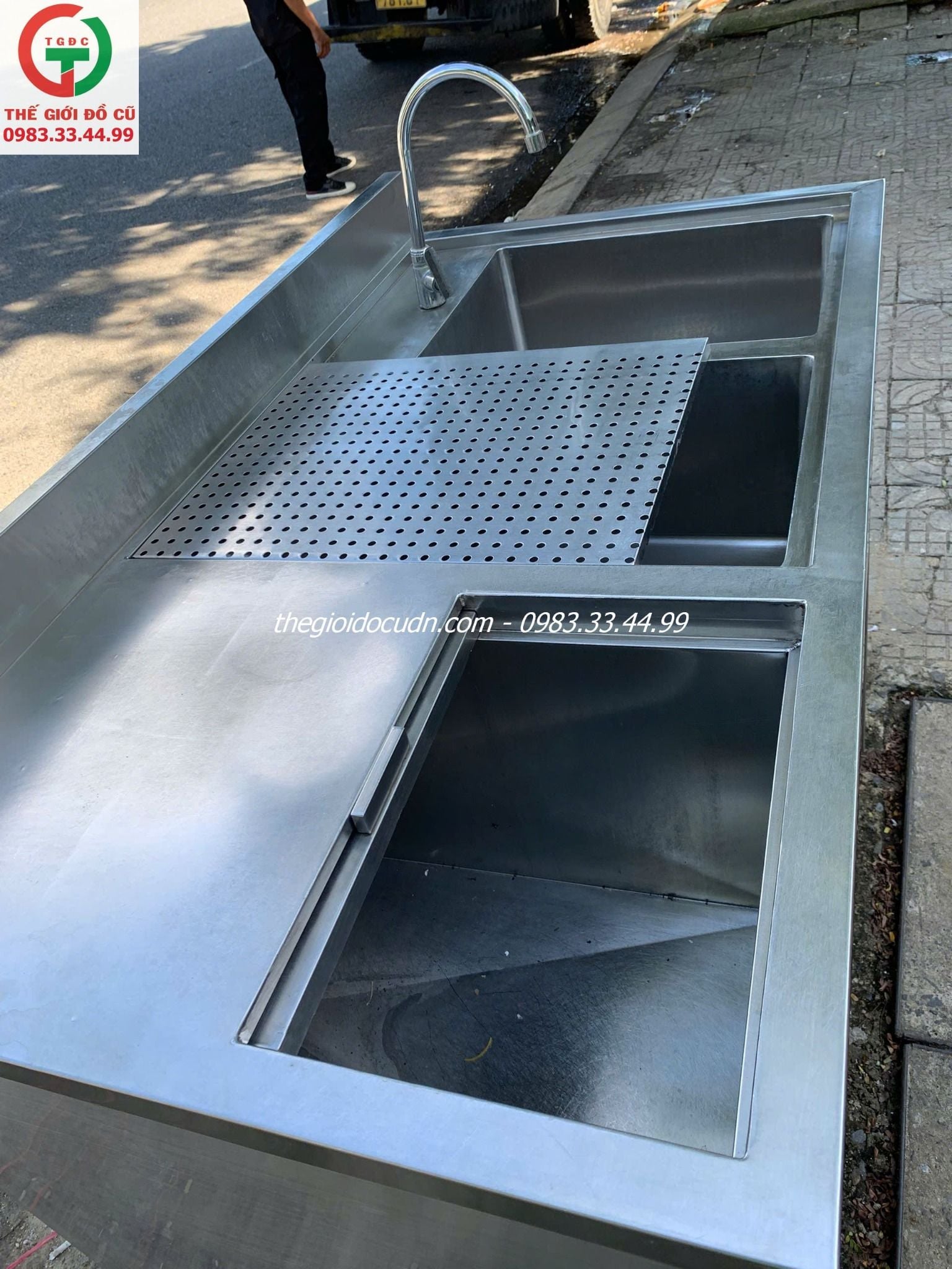 Thanh lý bồn rửa inox 304 kèm thùng đá âm, inox dày chắc chắn- dùng siêu bền.