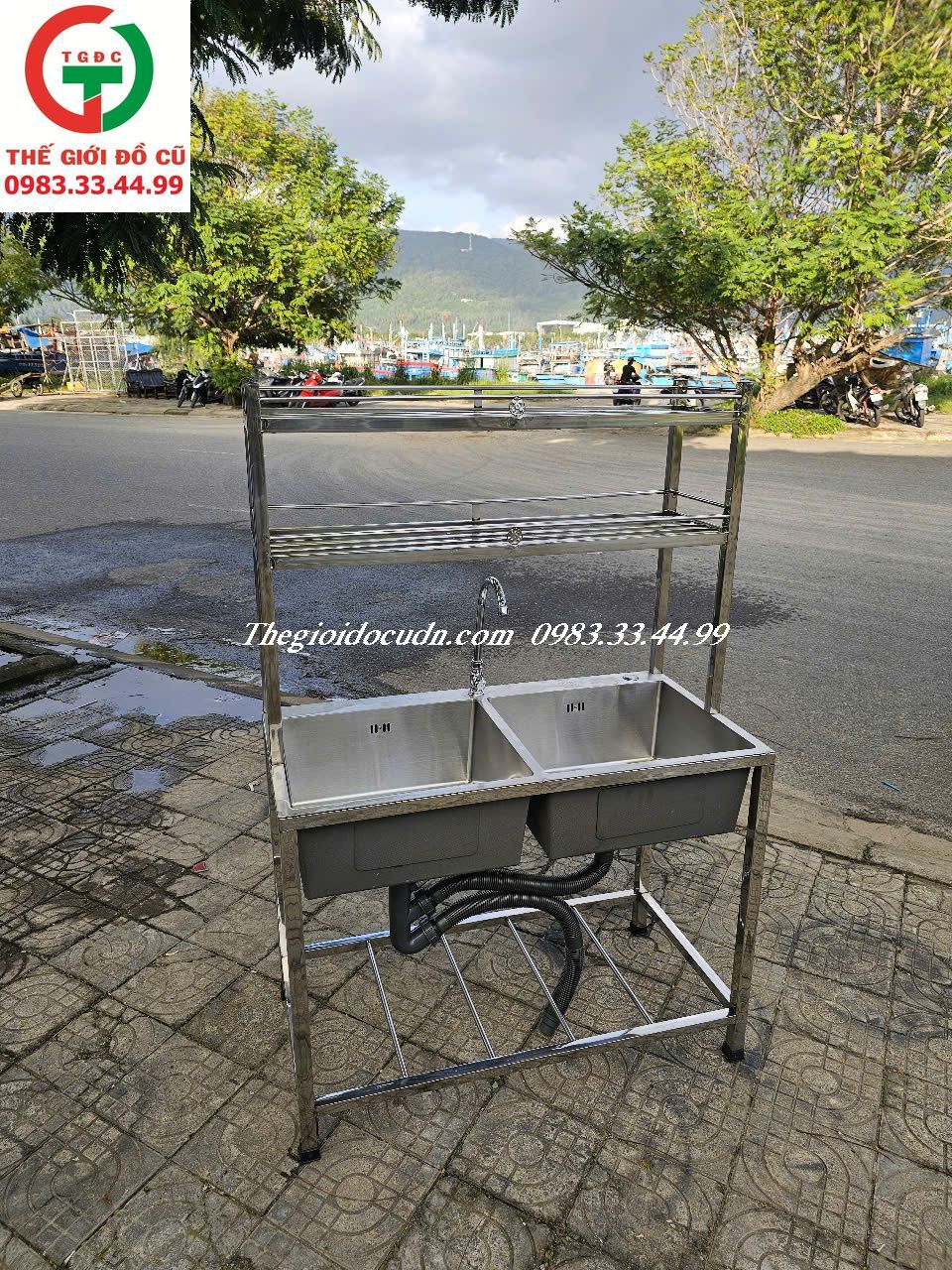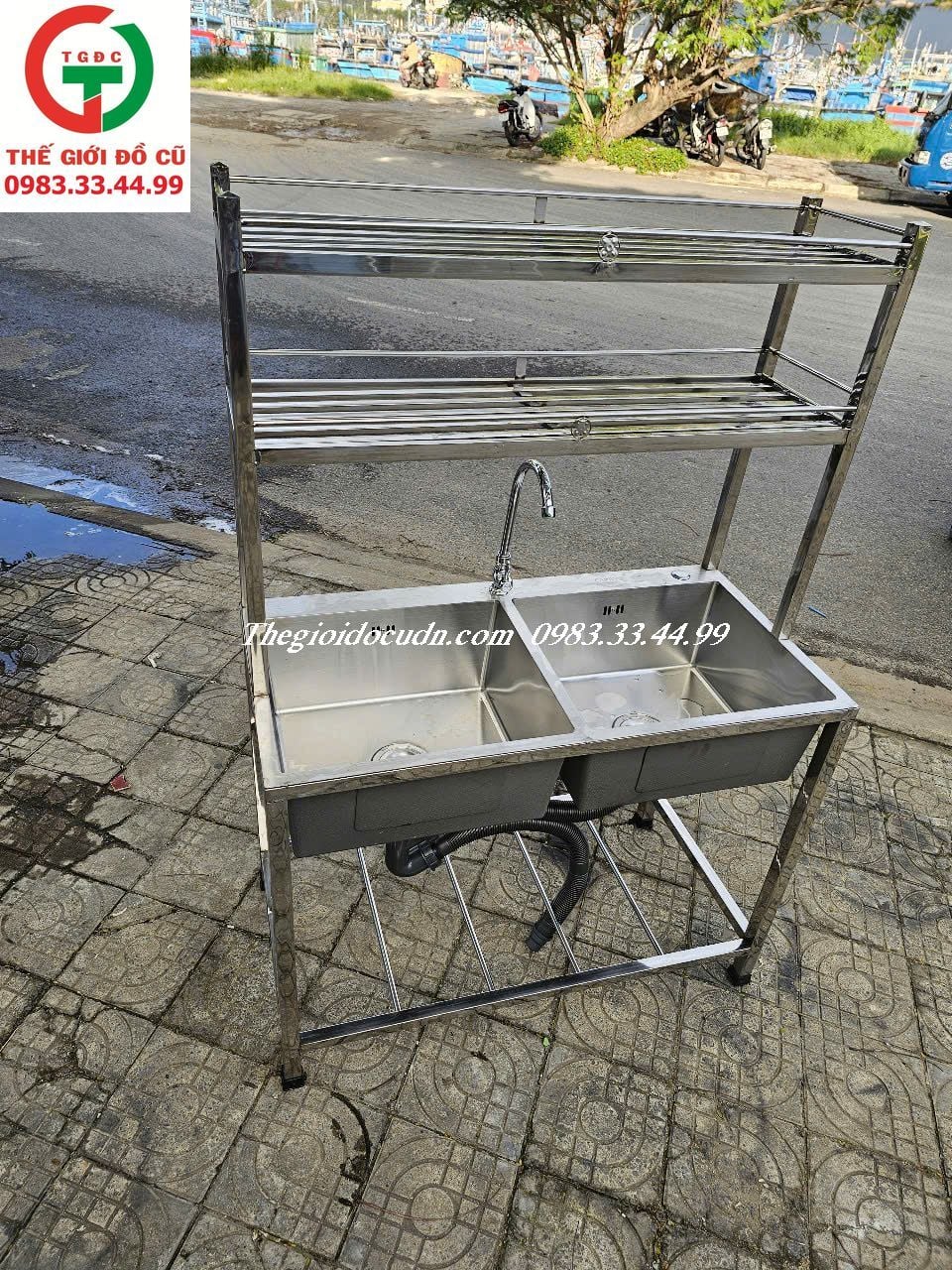 Chậu rửa inox 2 họng có kệ, 2 họng đúc dày cứng, dập nguyên mảng không ghép.
