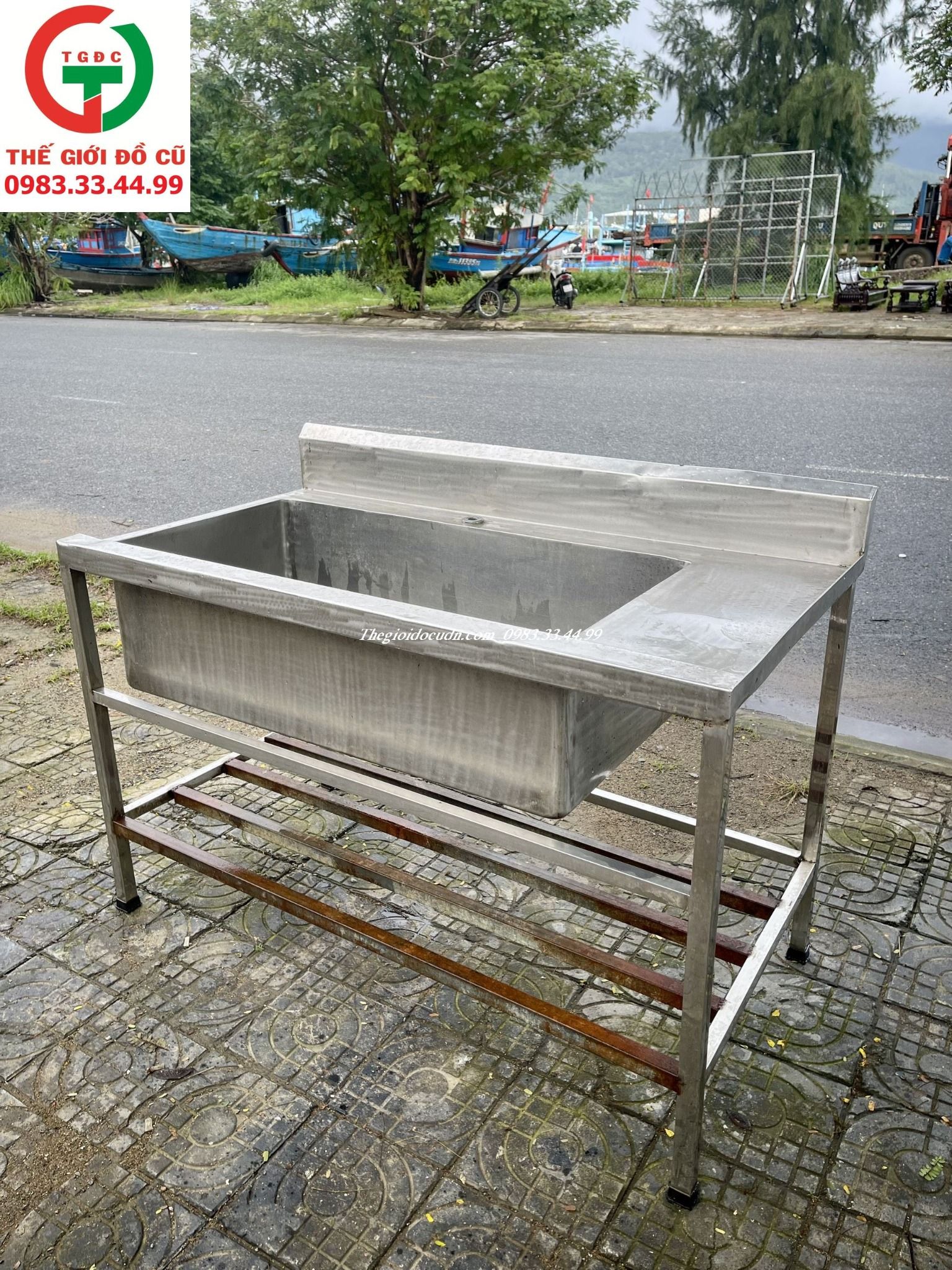 Thanh lý Chậu rửa inox 1 họng sâu rộng còn mới cho bếp ăn quán xá, nhà hàng..