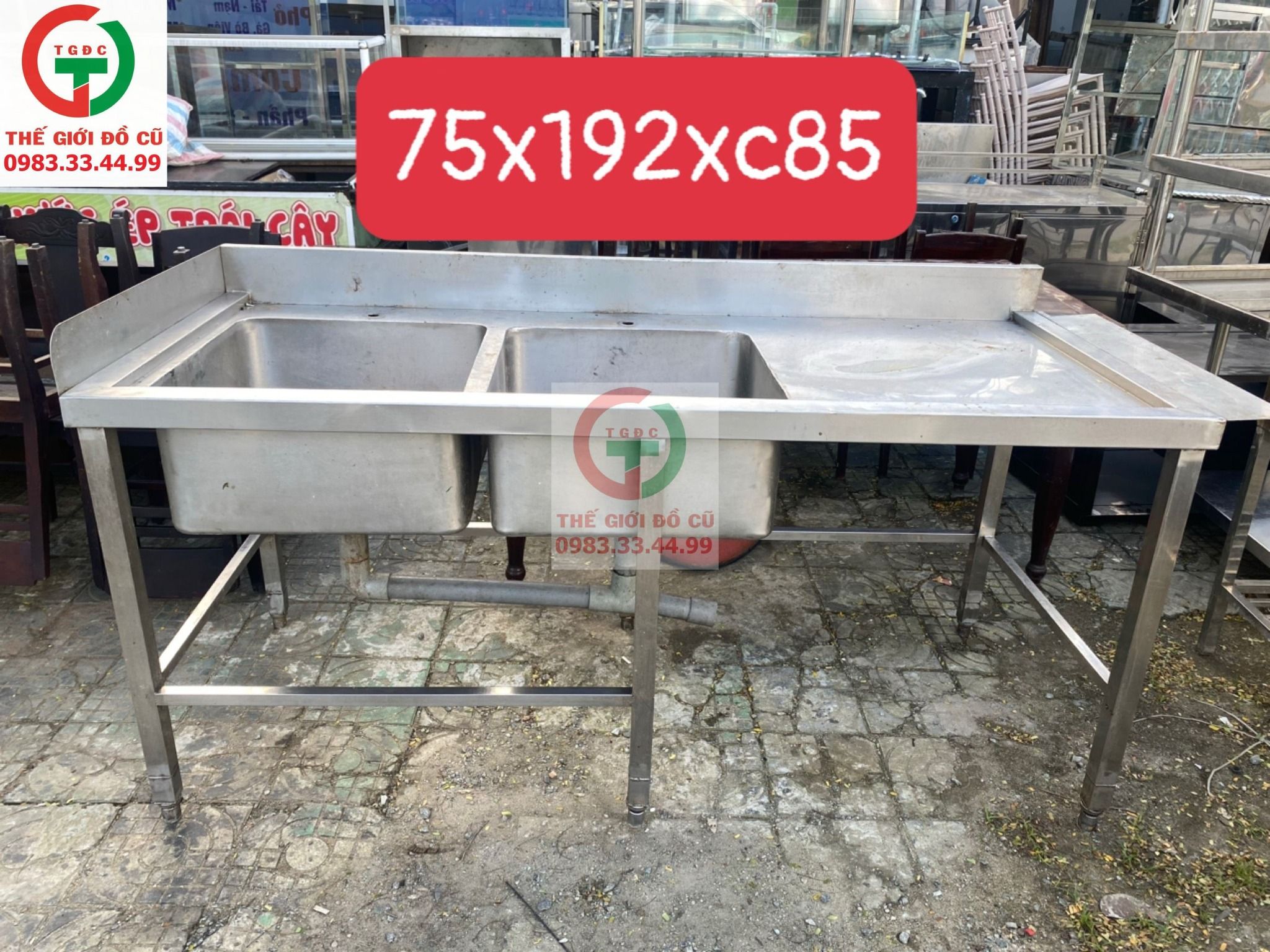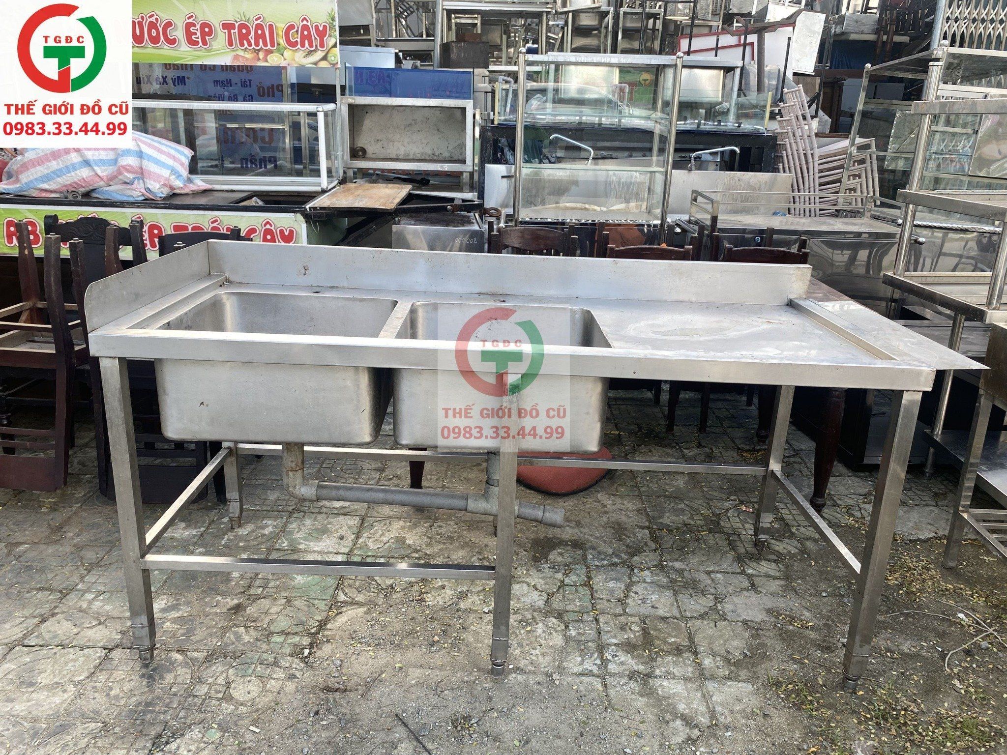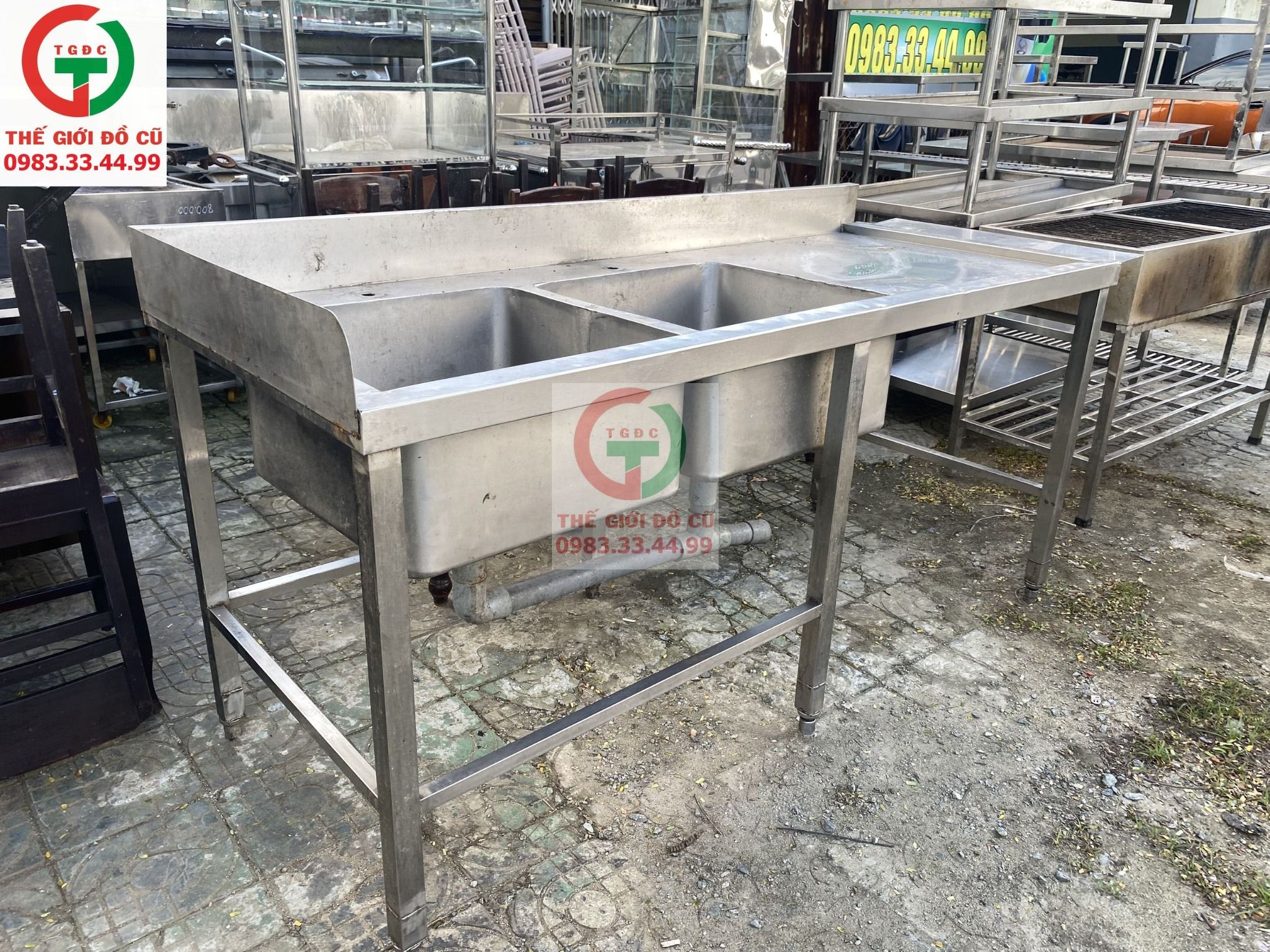 Thanh lý Chậu rửa Inox 2 họng vuông có chờ còn chắc cứng, thích hợp lắp đặt phòng trọ quán xá, nhà hàng..