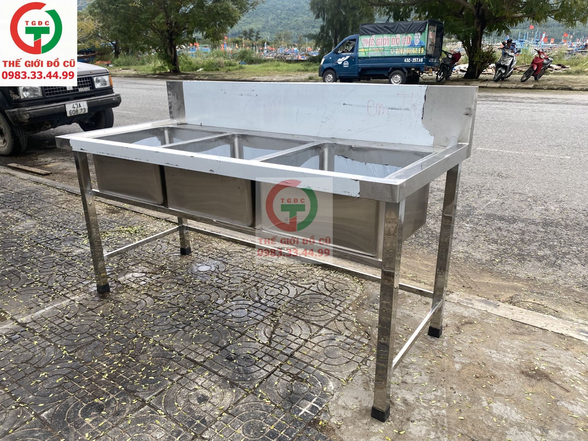 Chậu rửa inox 3 họng vuông lắp đặt sử dụng bếp ăn quán xá, nhà hàng bền đẹp.