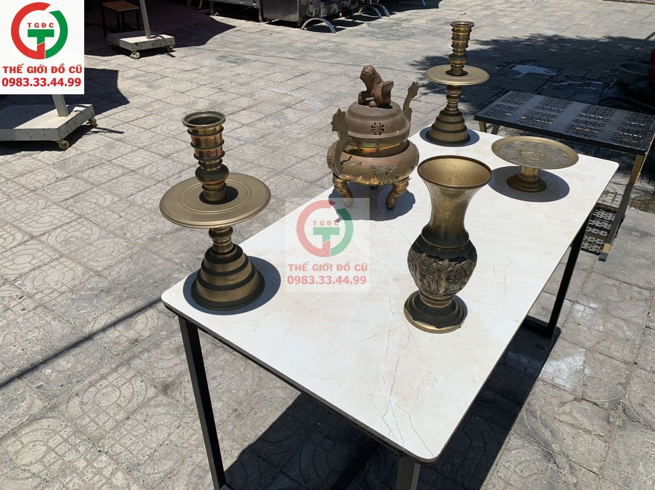 COMBO CHÂN ĐÈN ĐỒNG - NỒI HƯƠNG ĐỒNG - ĐĨA ĐỒNG - LỌ HOA ĐỒNG THANH LÝ