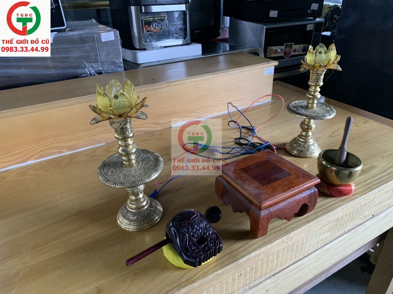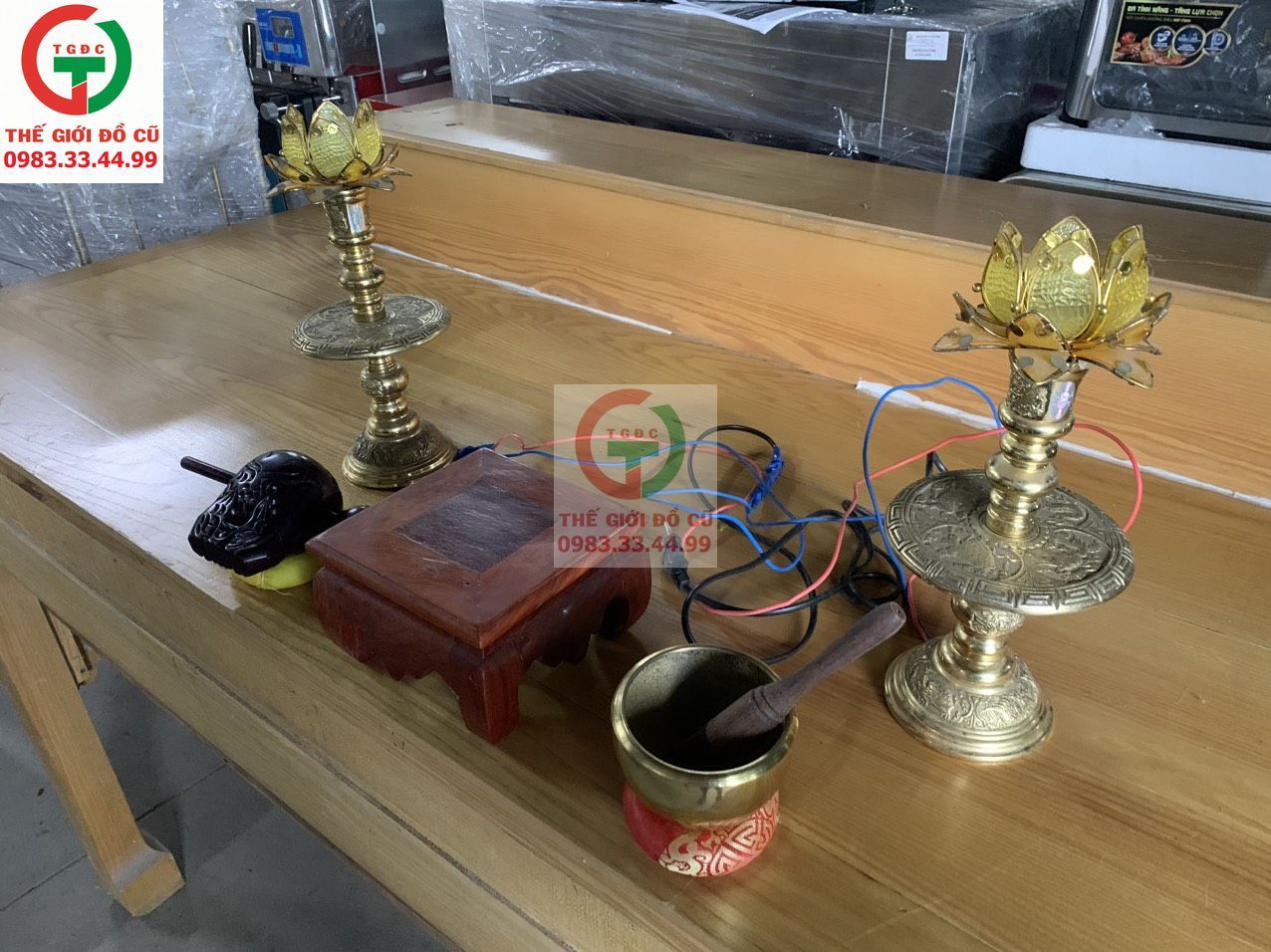 Thanh lý bộ đèn và chuông mõ đế gỗ đặt bàn thờ gia tiên cho gia đình.