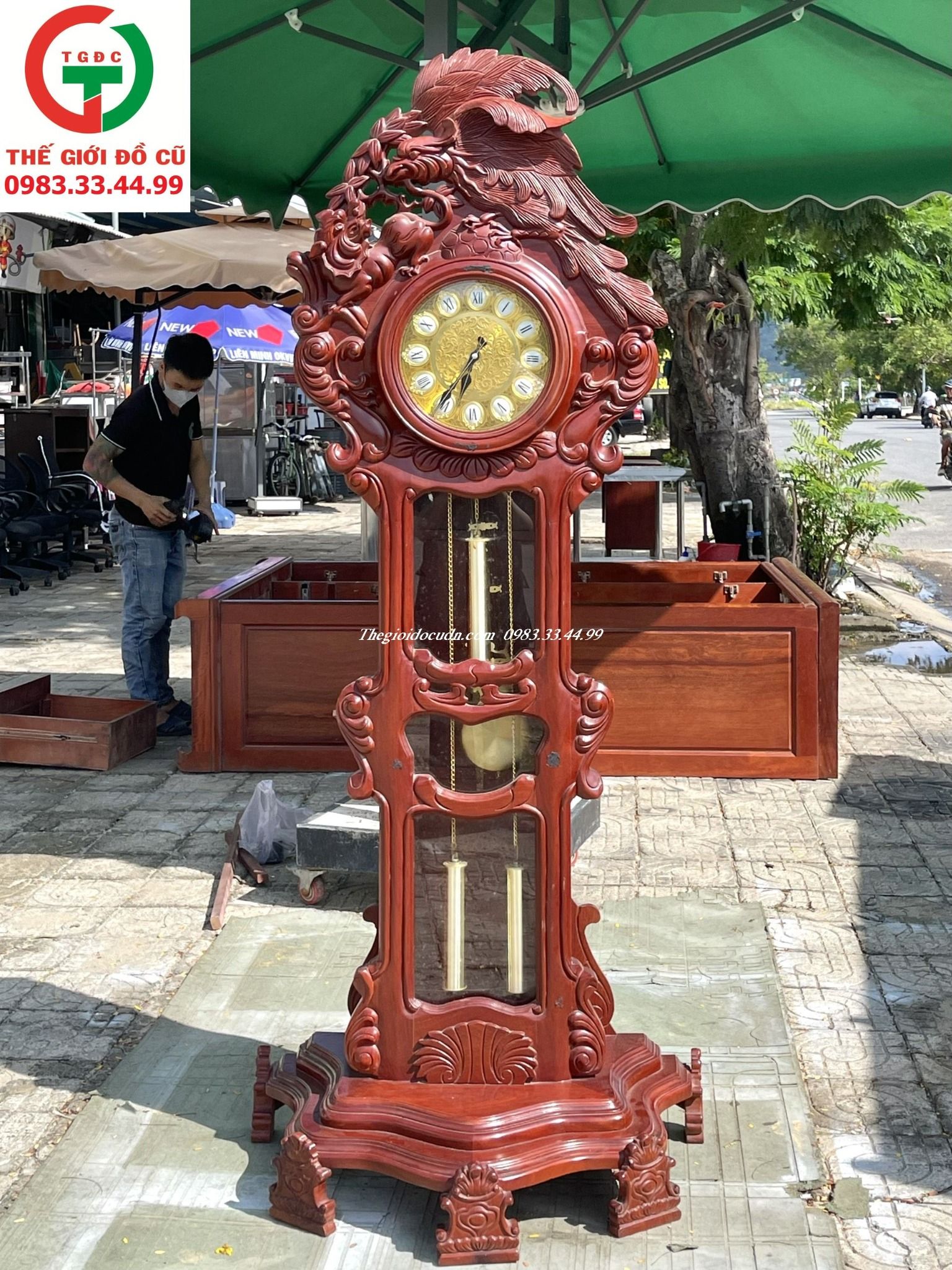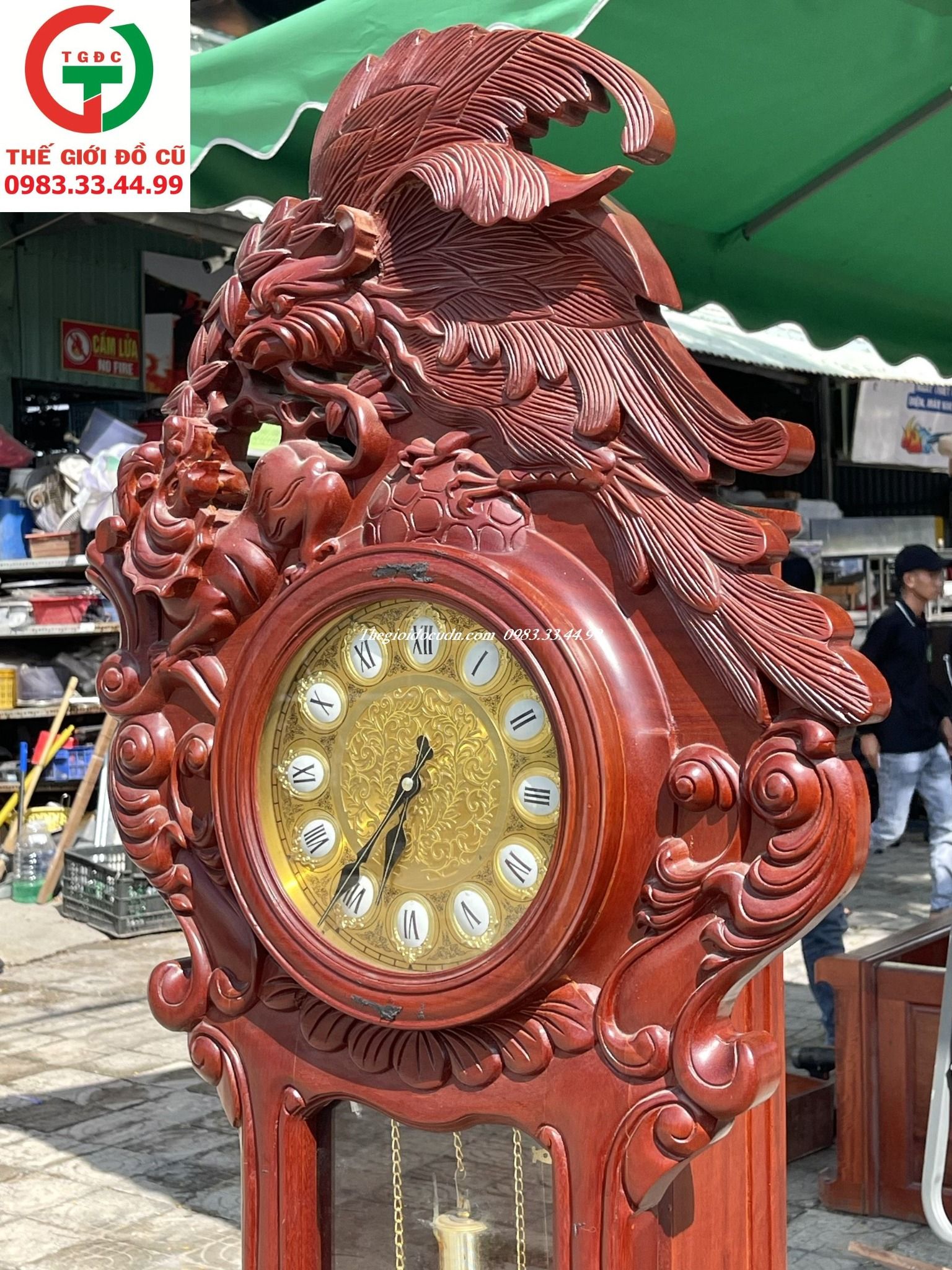 Thanh lý cây đồng hồ quả lắc số la mã gỗ khắc chim ưng đẹp xịn sò còn mới, hàng đẹp cho AE decor sảnh khách sạn, văn phòng Sếp hay phòng khách gia đình sang trọng..