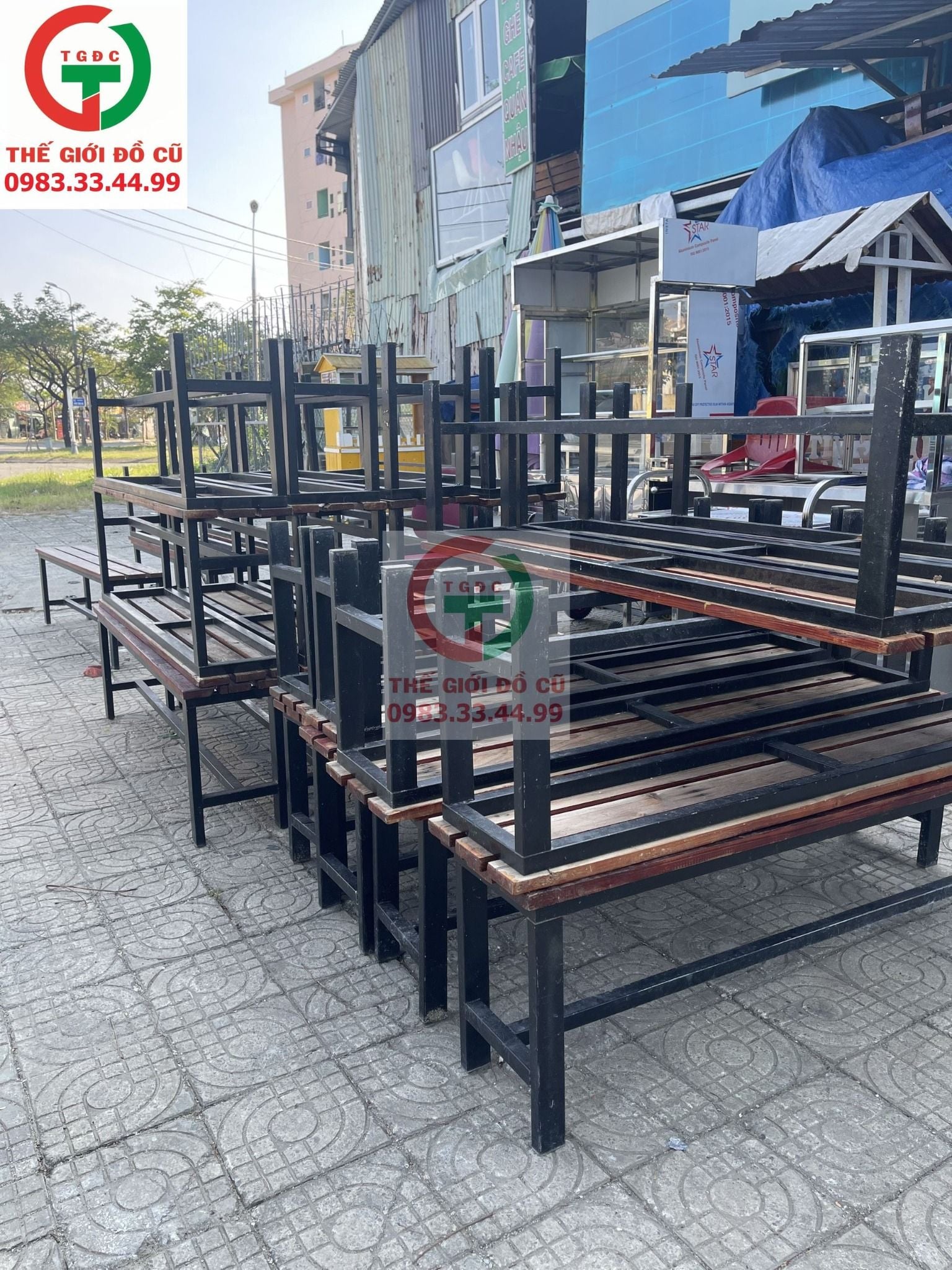 Thanh lý ghế băng dài gỗ khung sắt chắc chắn cho quán xá, trung tâm dạy học setup.