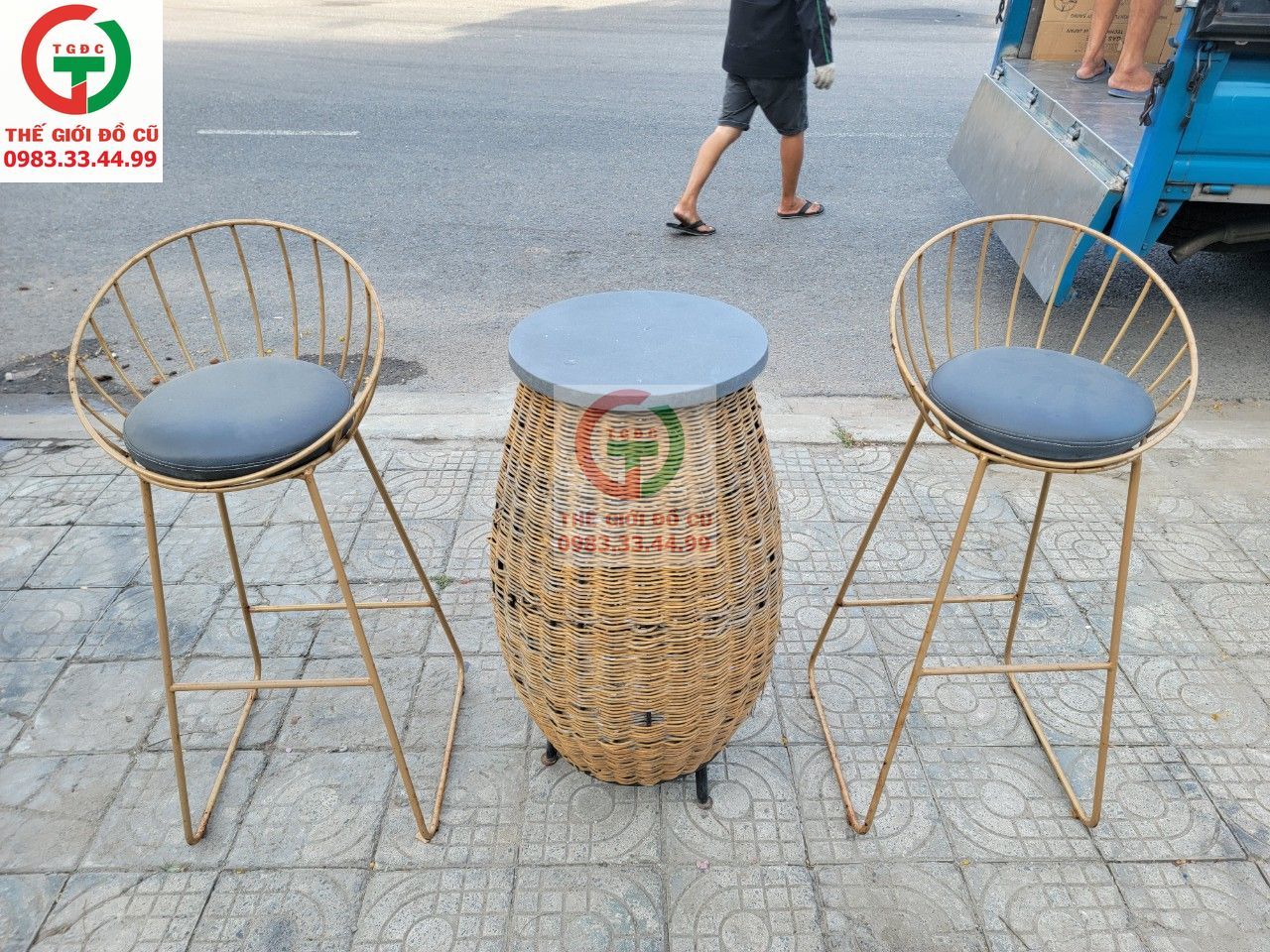 GHẾ BAR CAFE KẾT HỢP BÀN CHÂN MÂY