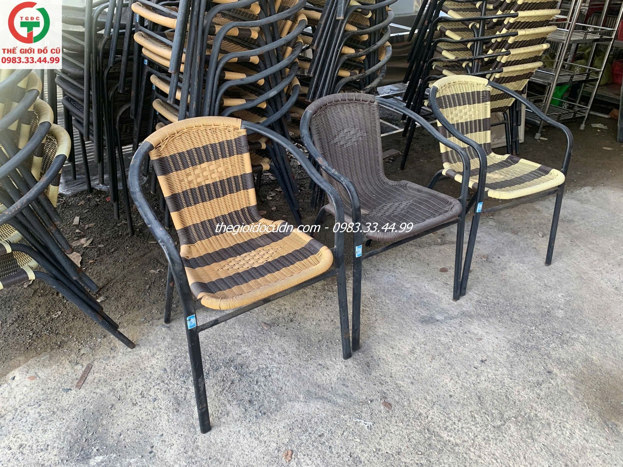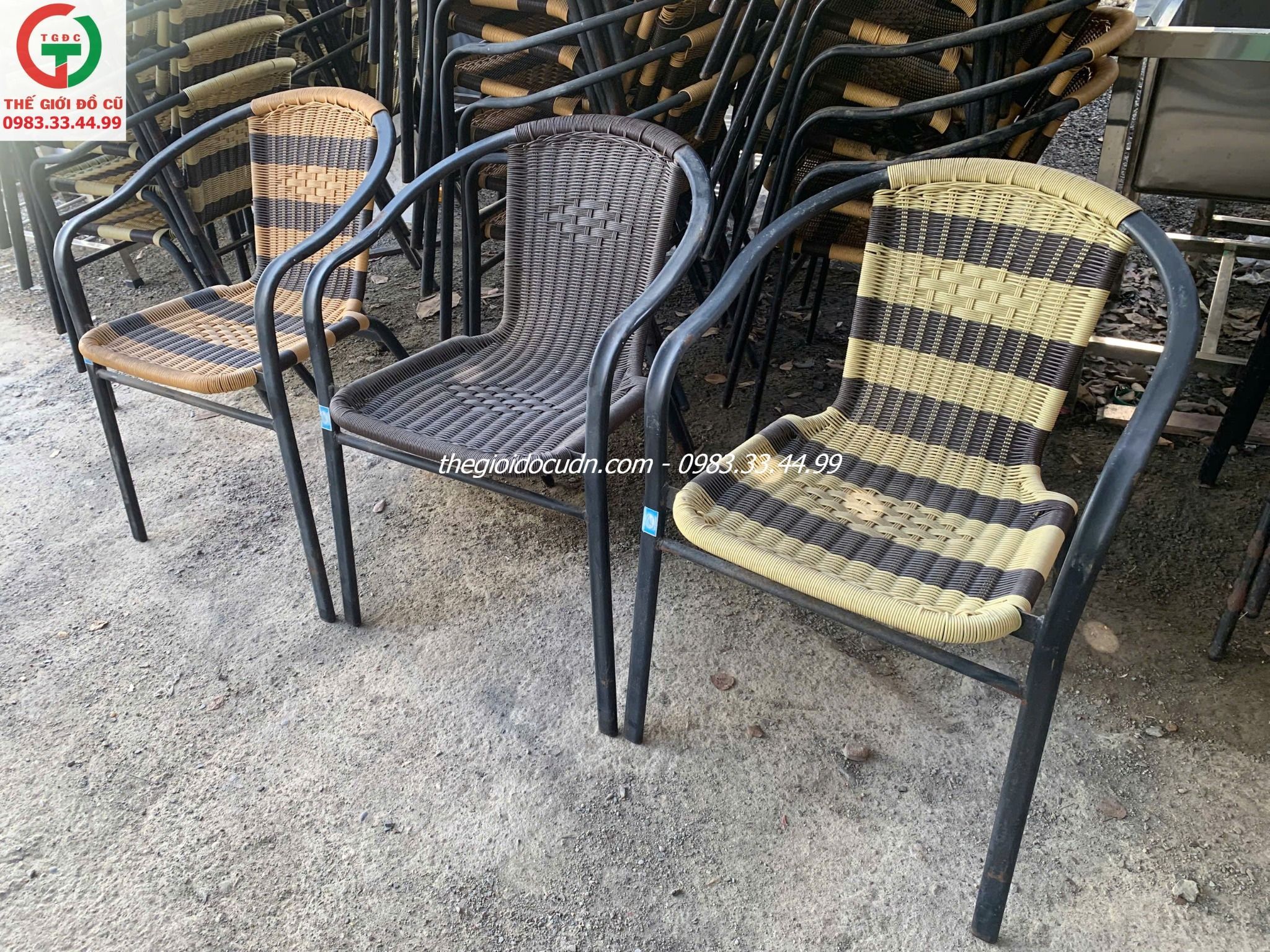 +Ghế khung sắt nhựa giả mây đẹp ngồi thoải mái, xếp chồng cũng tiện.
