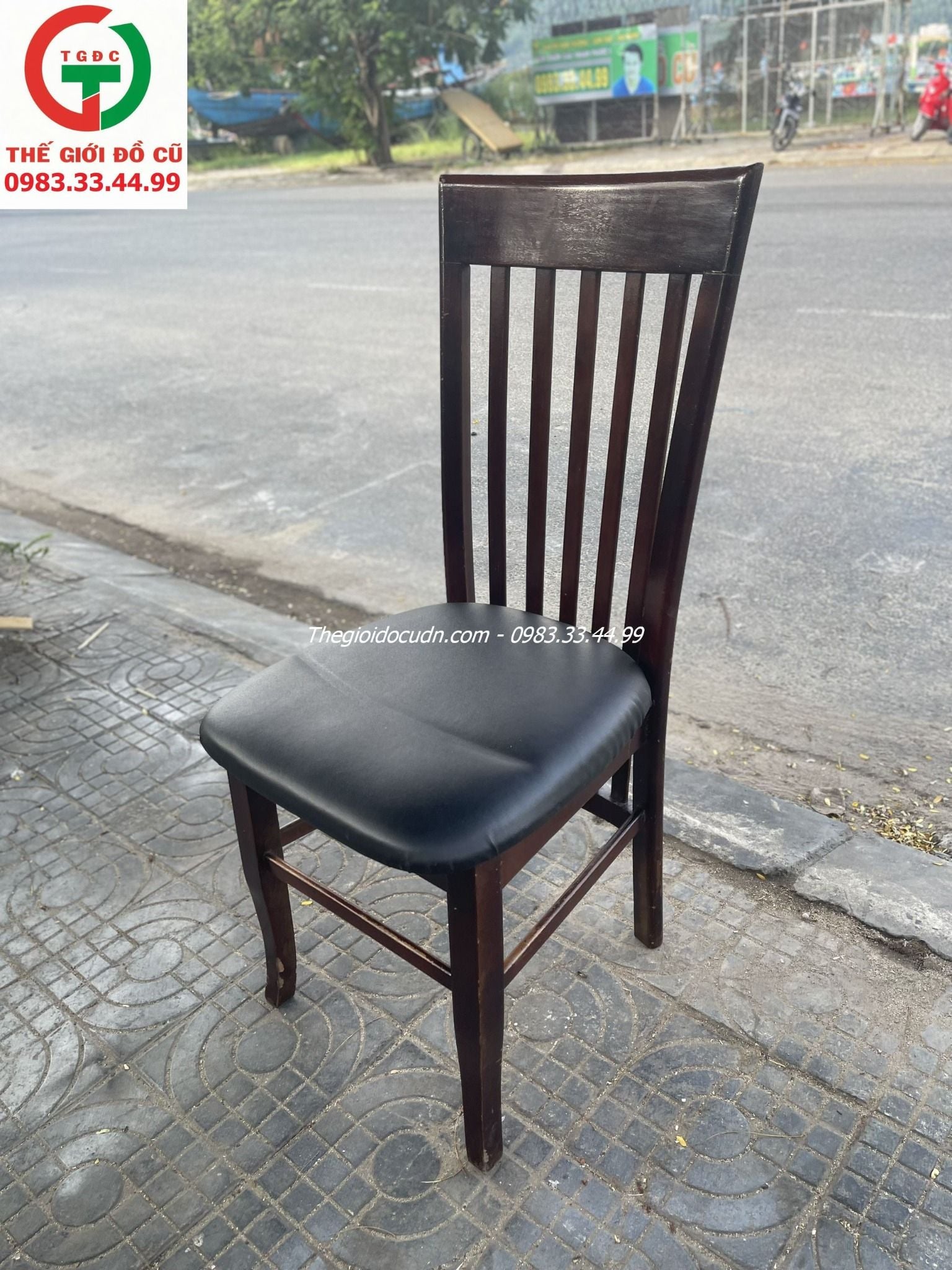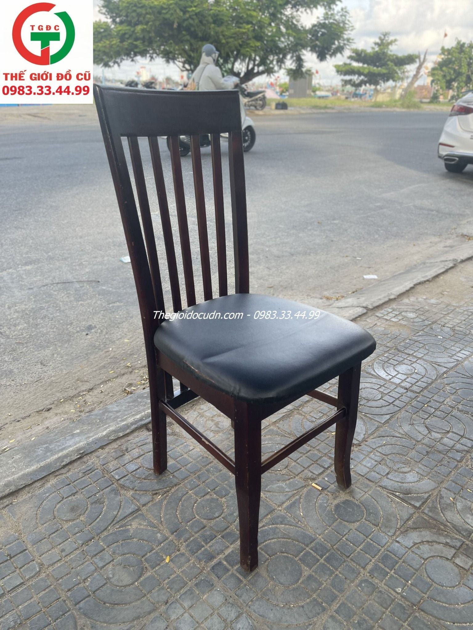 - Ghế gỗ còn mới keng, đệm da ngồi êm tựa thoải mái, bền chắc.