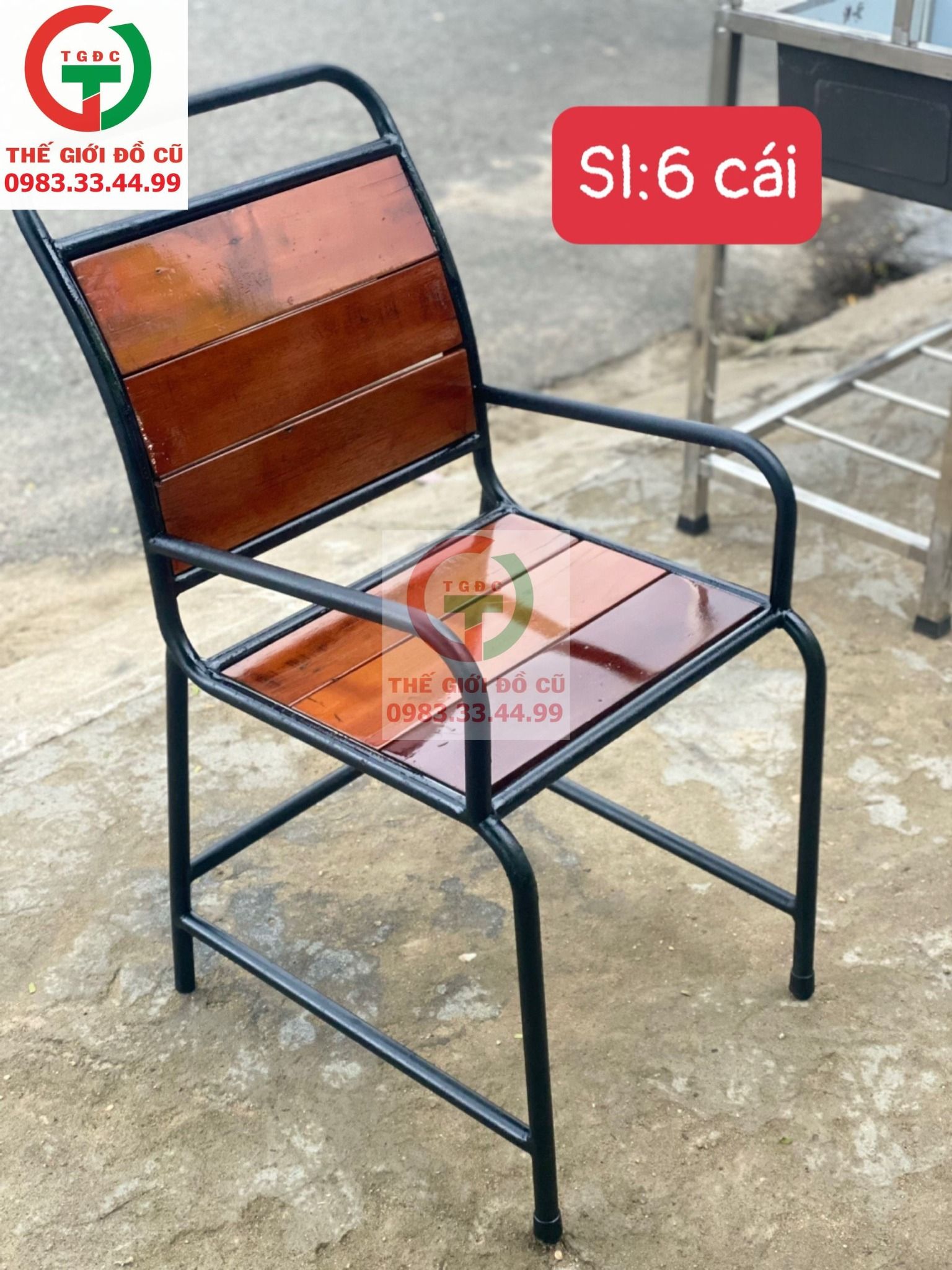 Thanh lý 6 cái ghế gỗ sắt đẹp , đã được phủ sơn bóng chống nước ẩm, thích hợp cho quán cafe trong ngoài sân..