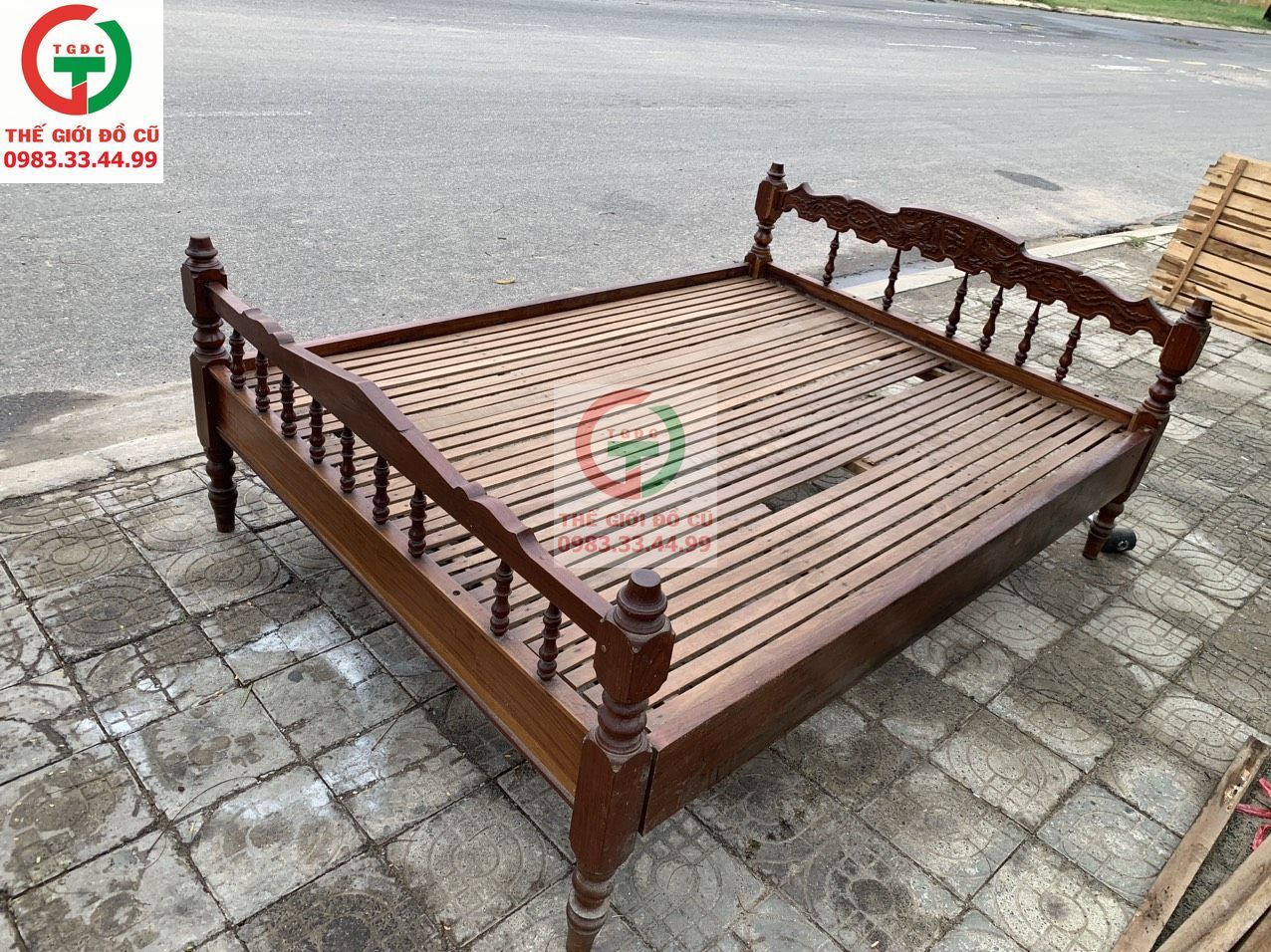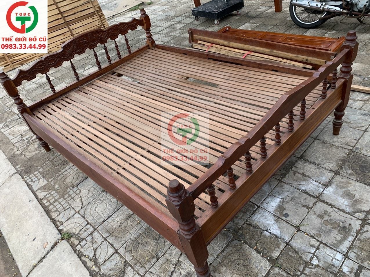 Thanh lý Giường Gỗ Chân Tiện xưa còn ngon, vạt thẳng đều chắc chắn.