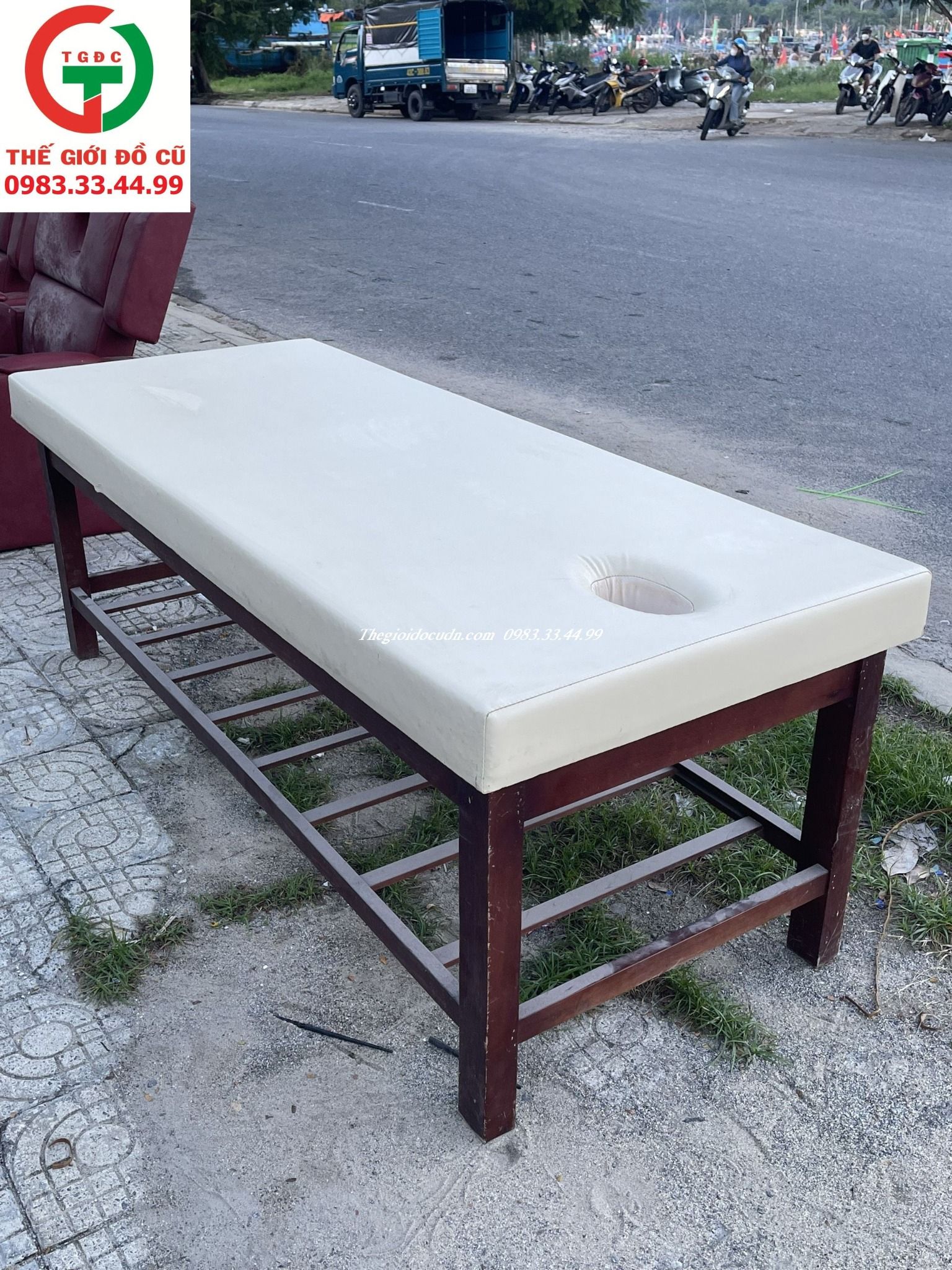 Thanh lý Giường spa còn mới 90%, khung gỗ chắc cứng, đệm dày nằm êm dễ lau chùi vệ sinh..