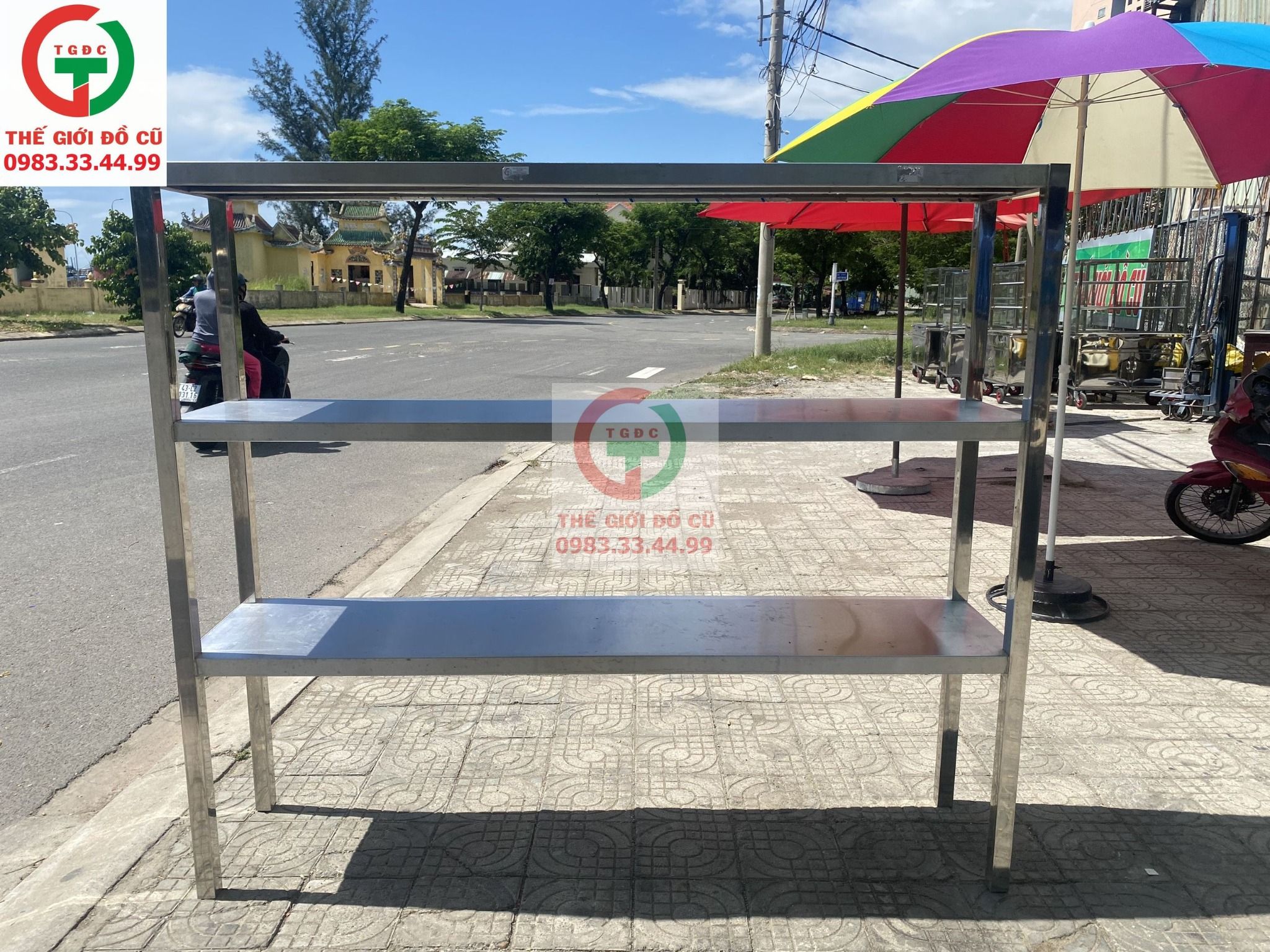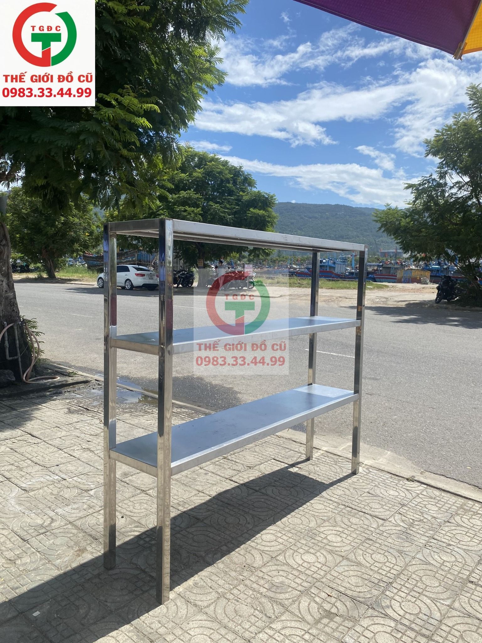 Thanh lý Kệ inox 3 tầng đặt để đồ dùng bếp ăn quán xá, nhà hàng, để hàng kho bãi.