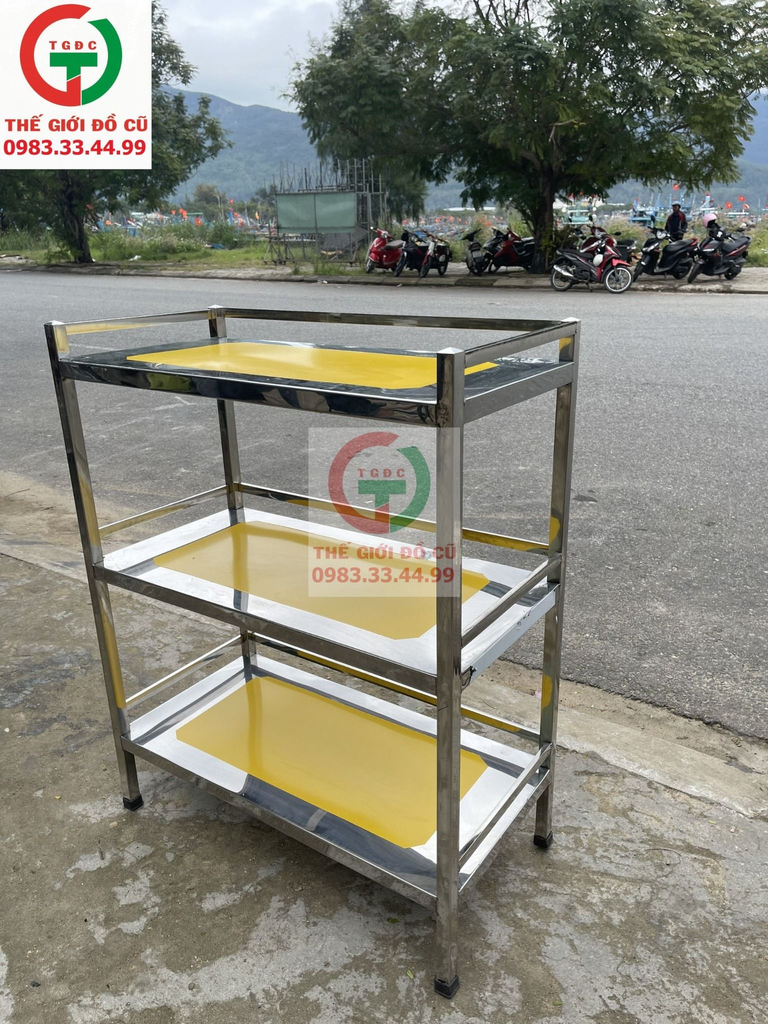 Thanh lý Kệ Inox 3 tầng phục vụ quán xá đặt để đồ dùng bếp ăn tiện gọn sạch sẽ..