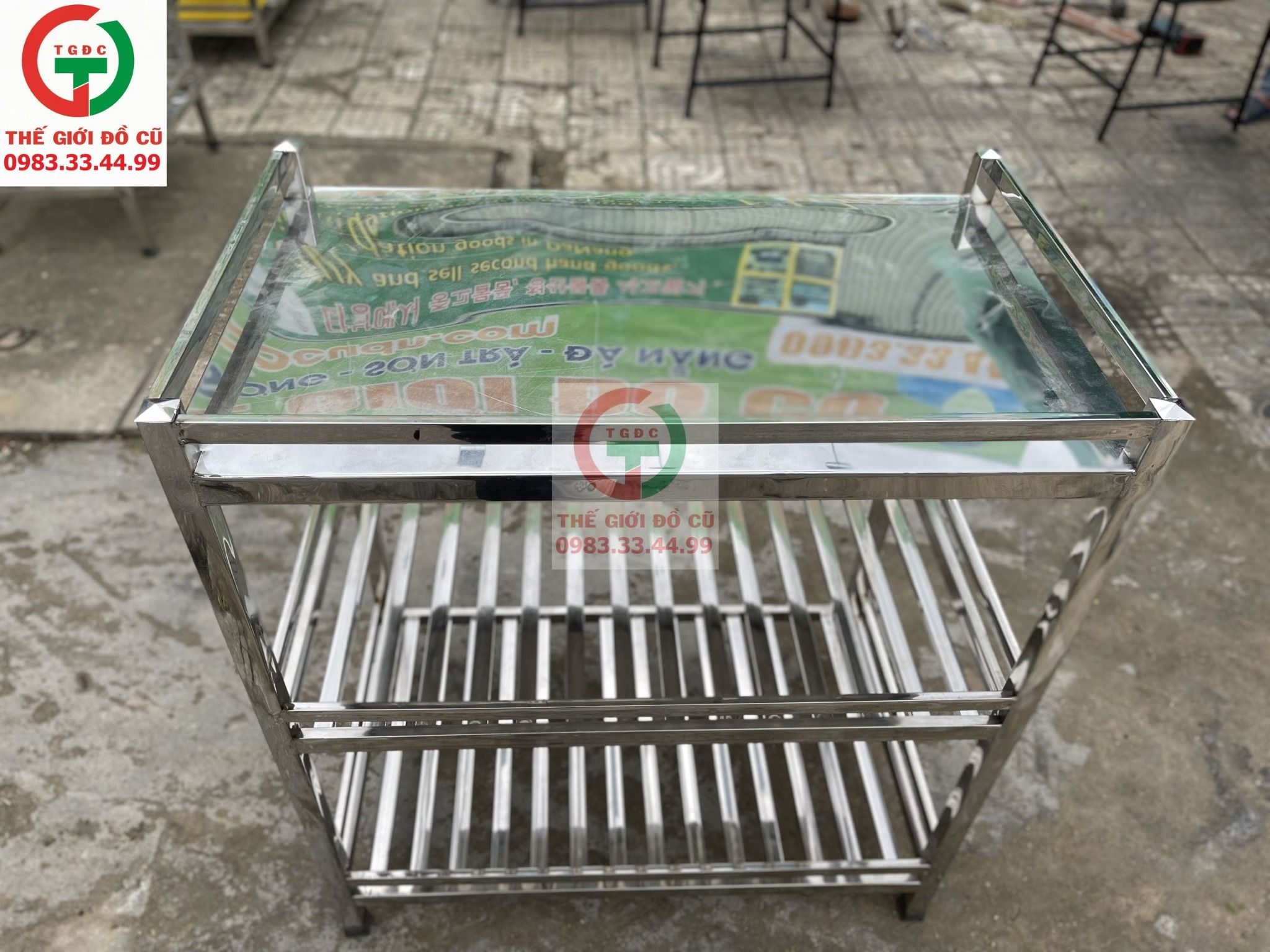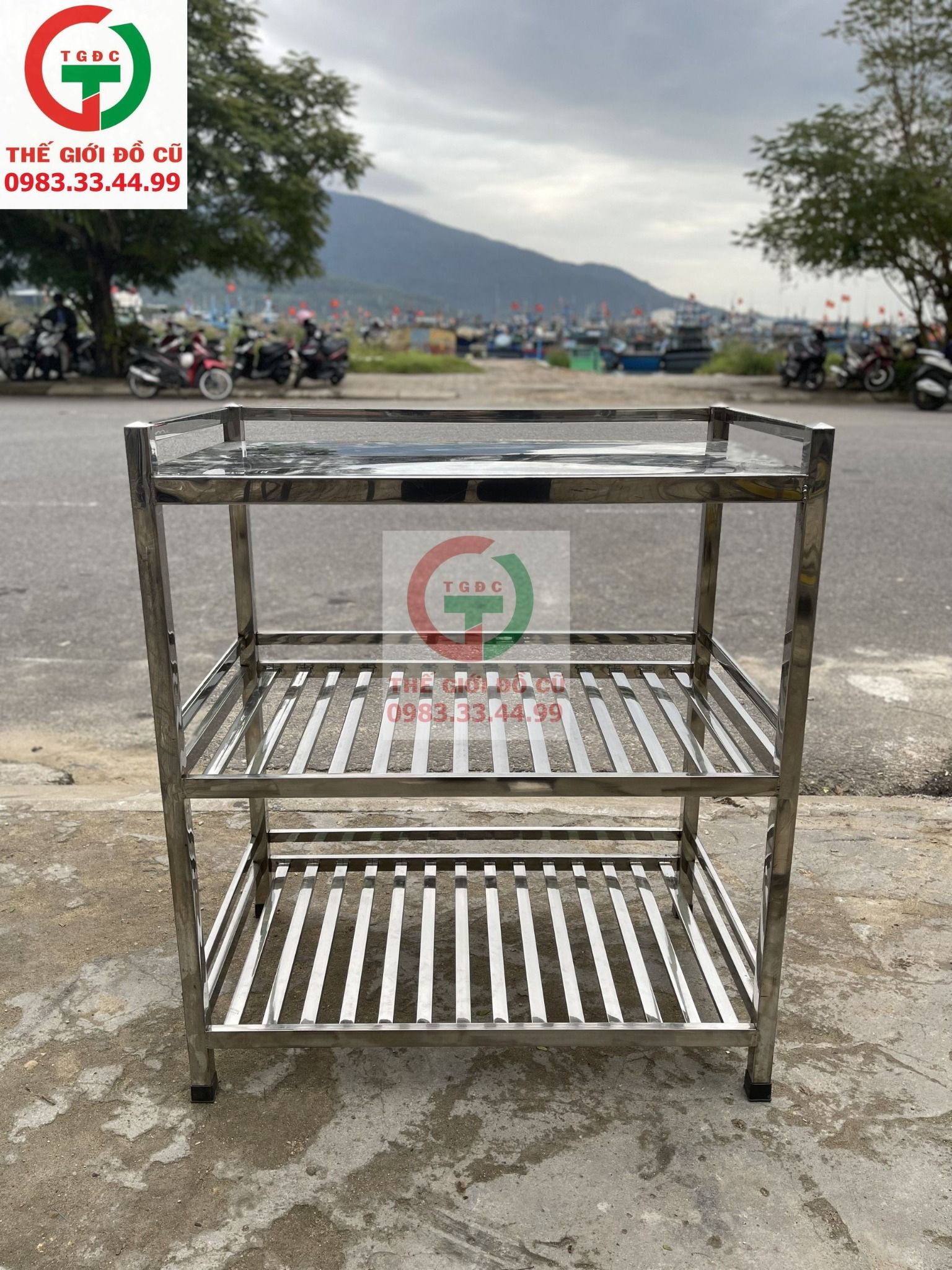 Thanh lý Kệ Inox 3 tầng phục vụ quán xá đặt để đồ dùng bếp ăn tiện gọn sạch sẽ..