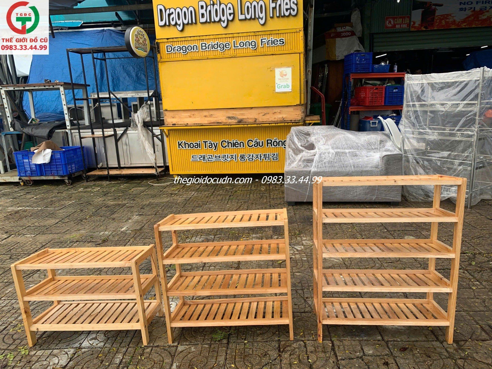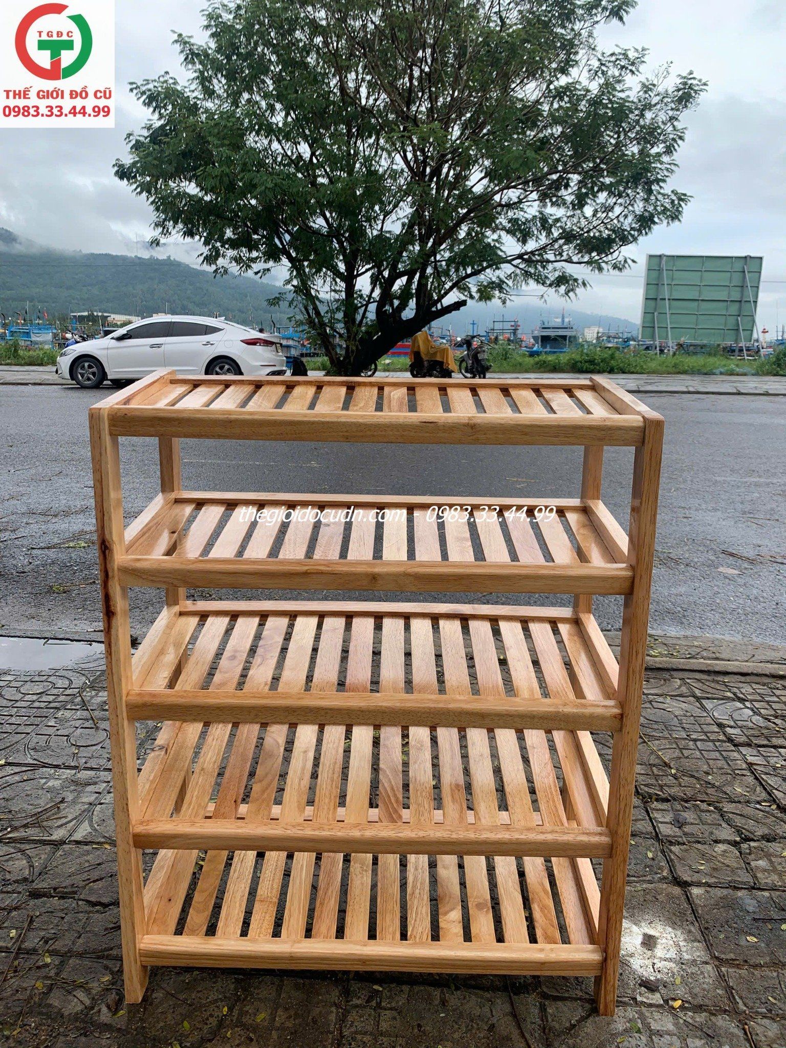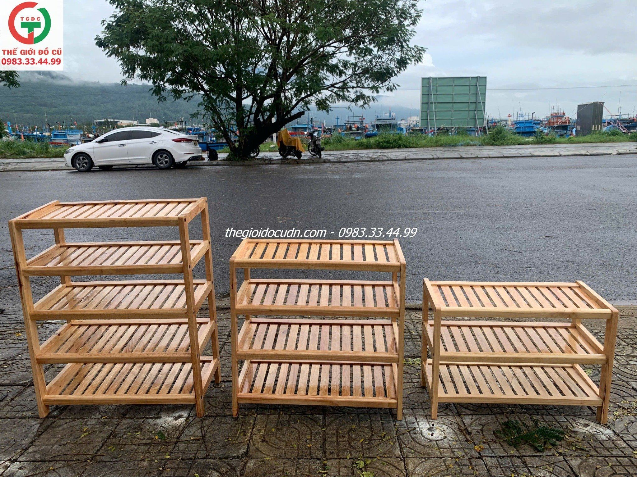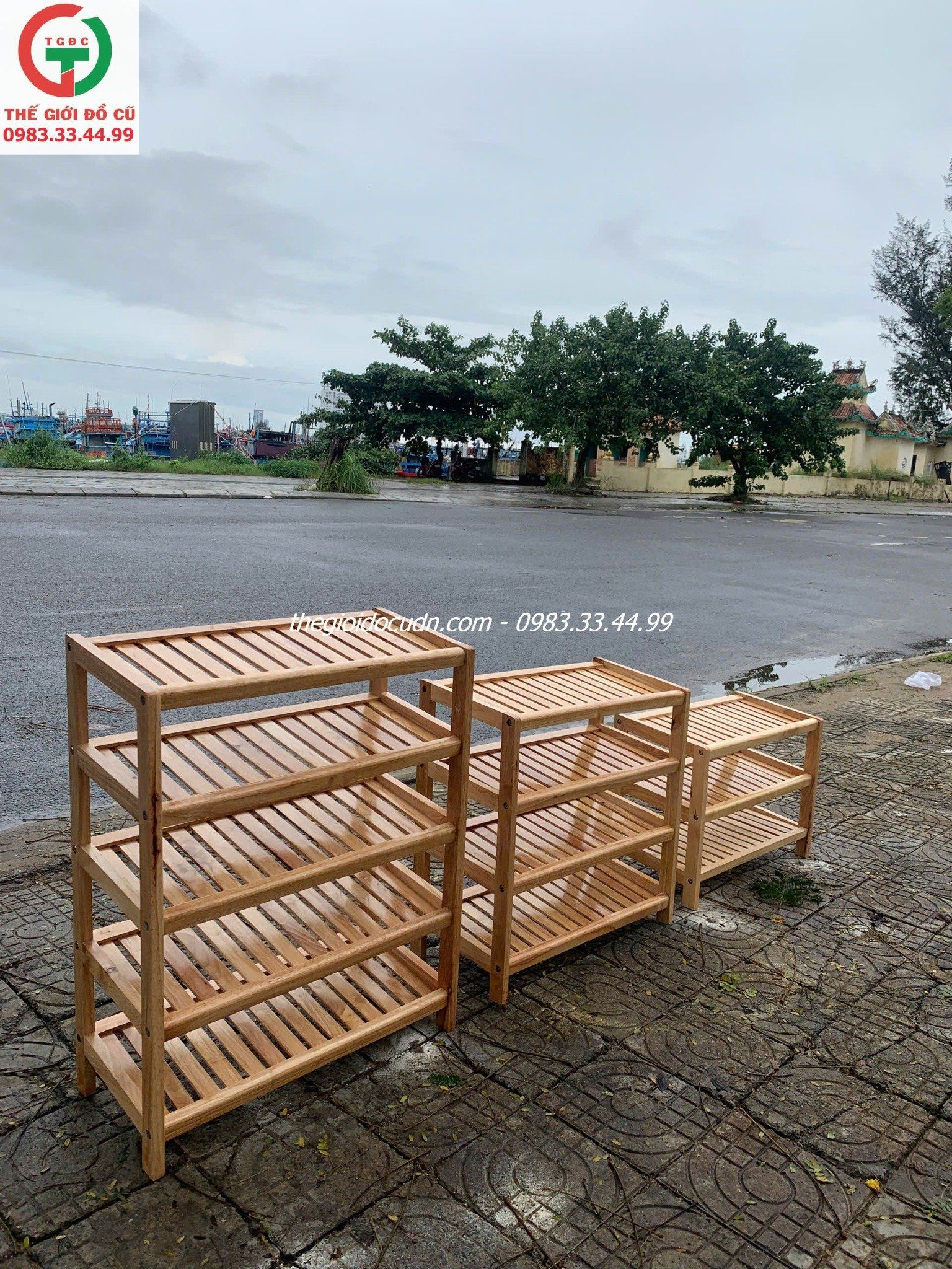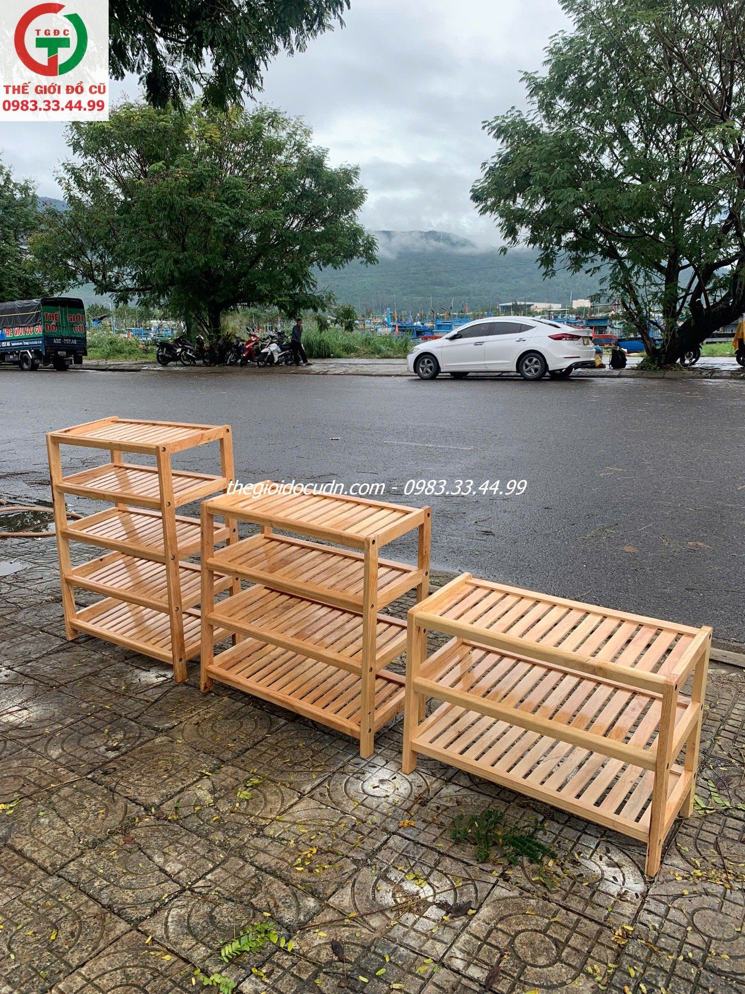 Kệ giày gỗ 3-4-5 tầng màu tự nhiên, thiết kế đơn giản, gọn gàng.