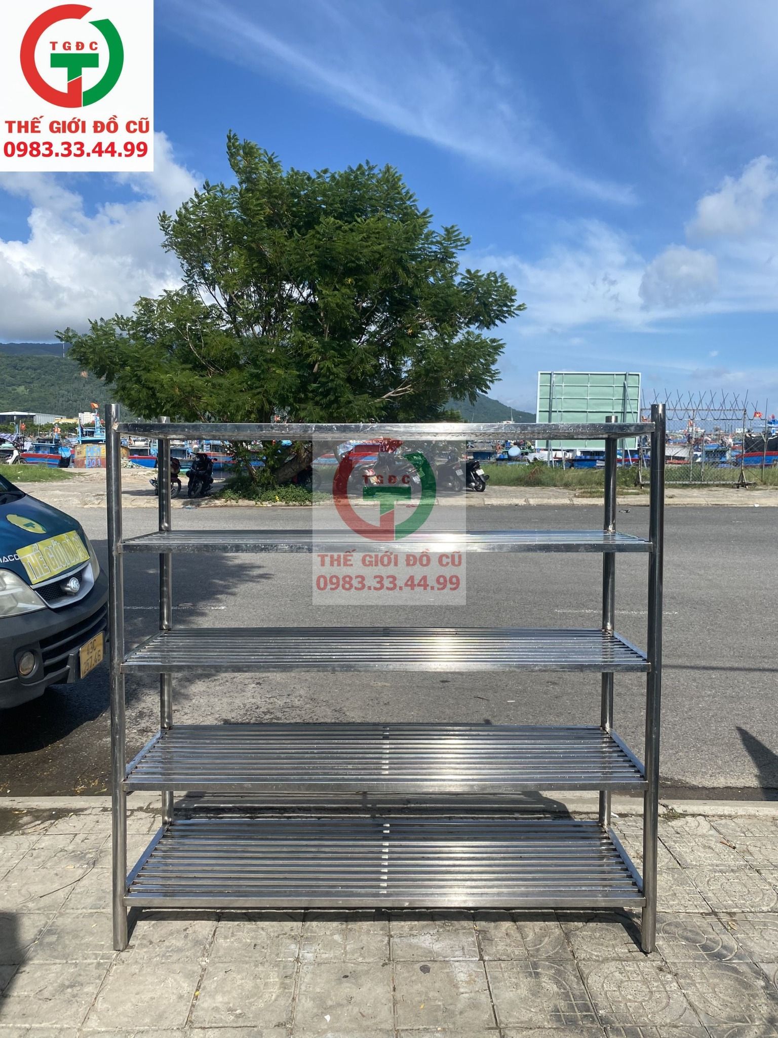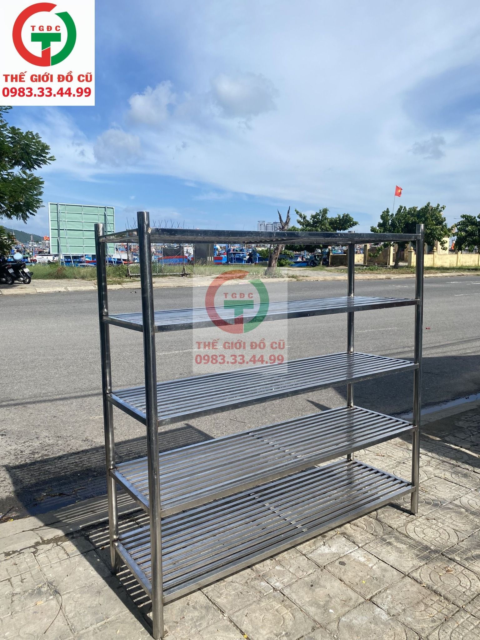 Thanh lý Khung Kệ Inox 4 tầng đặt để đồ dùng, dụng cụ bếp ăn quán xá, nhà hàng.