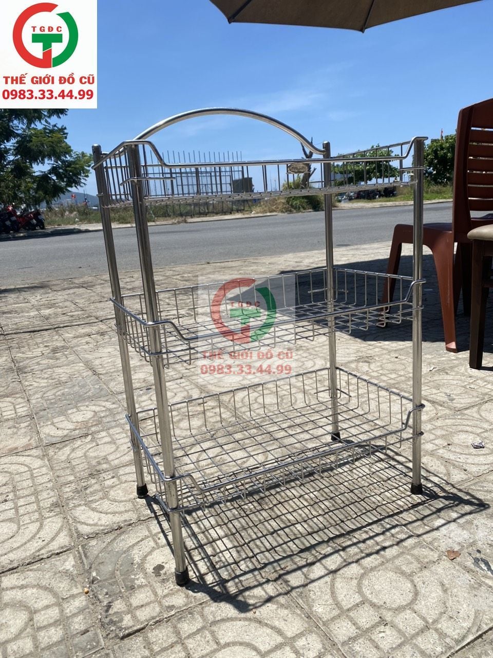 Thanh lý kệ Inox 3 ngăn tầng đựng chén bát ly cốc còn mới cho bếp ăn gia đình, quán xá tận dụng.